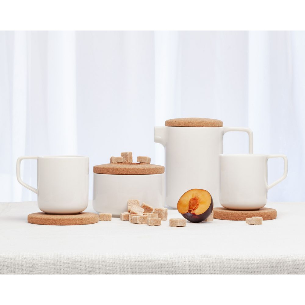Отвлечься от повседневной суеты за чашечкой горячего чая или ароматного кофе особенно приятно с коллекцией Riposo. Продуманная функциональность и яркий контраст текстурной пробки и гладкого молочно-белого фарфора — для тех, кто следит за последними тенденциями и всегда выбирает комфорт.В набор входит:
