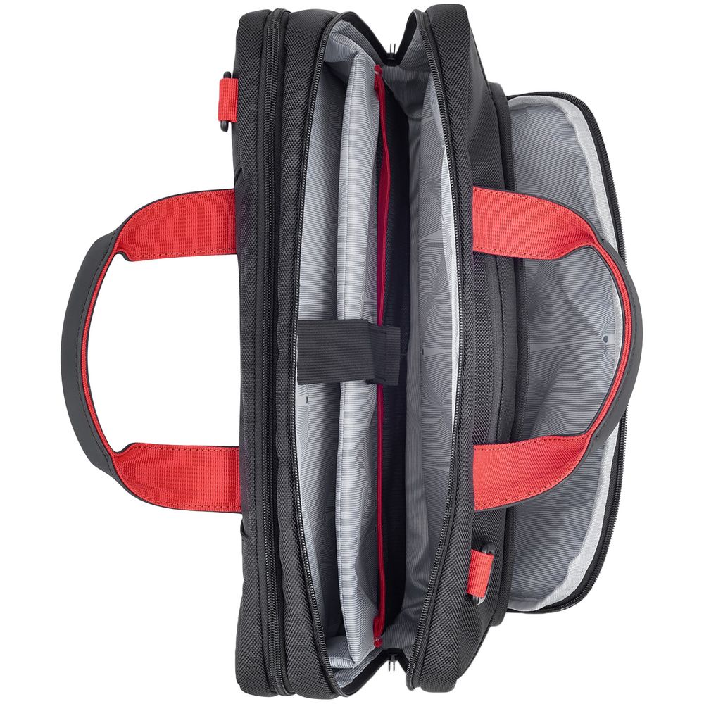 Мягкое внутреннее отделение предназначено для ноутбука, а регулируемый и съемный плечевой ремень гарантирует удобство переноски. Многофункциональный органайзер позволяет аккуратно разместить аксессуары и документы, обеспечивая быстрый доступ к ним.