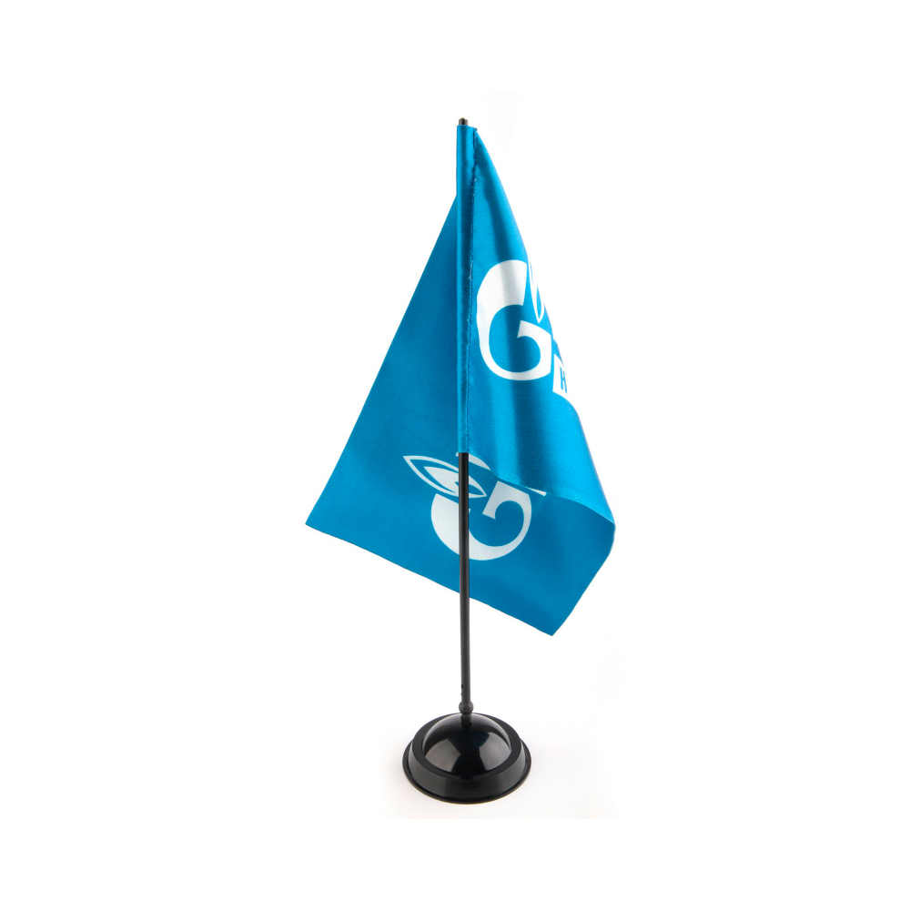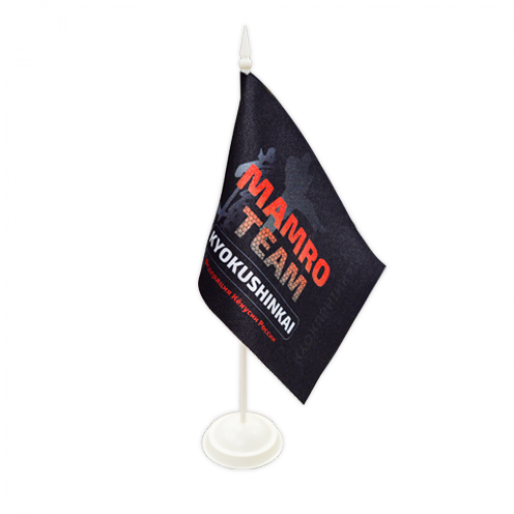 Тканевый флажок из атласных тканей используется для украшения кабинета руководителя и офиса, в конференц-залах, при проведении переговоров. Крепсатин, атлас или сатен смотрятся дорого и благородно. Двухслойный атласный флажок изготавливается путем запечатки двух прямых сторон с последующим склеиванием сторон термопрессом. На лицевой и оборотной стороне макеты могут быть разные. Стандартная обработка тканевого флажка включает в себя: сквозной карман слева шириной 0,8 см, термообрезку по периметру. Флажок крепится на специальную настольную подставку с одним или несколькими штоками. Она может быть пластиковой или металлической по вашему выбору. Флагшток заказывается отдельно.