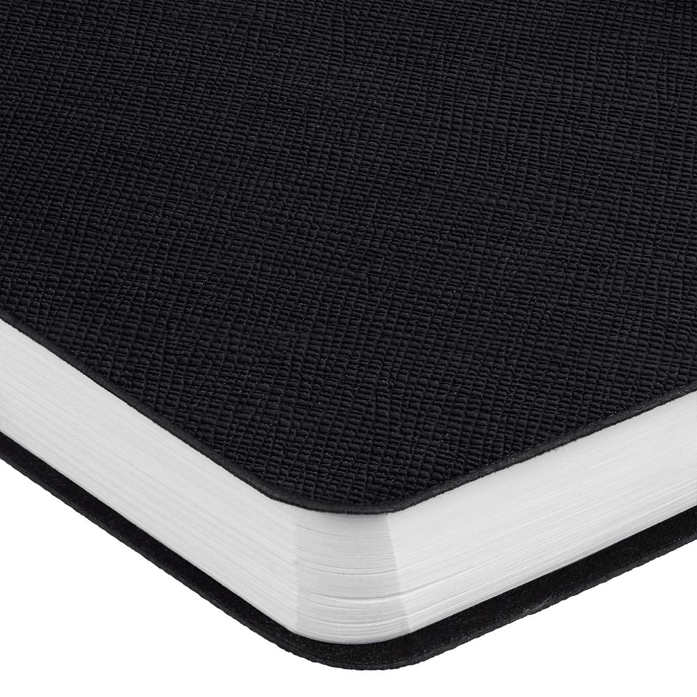 Блокнот с гибкой обложкой, выполнен из материала Saffian, черный АА. Дополнен ляссе в цвет обложки.