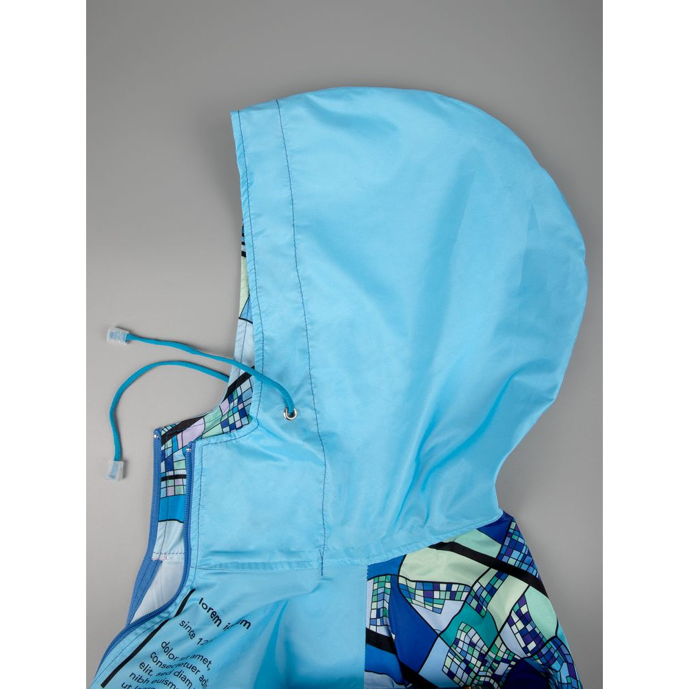 Дождевик с воротником на молнии и глубоким капюшоном со шнурком.