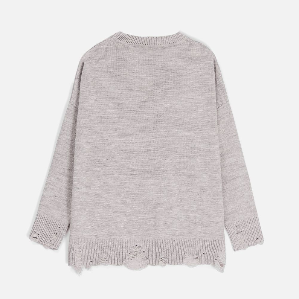 В дизайне мягкого джемпера с круглым вырезом Sharpick гранж-эстетика органично сочетается с милым акцентом — пушистым рисунком в виде озорного котика. Получается веселая вариация на тему того, откуда берется модная рваная одежда, а джемпер моментально создает настроение легкой несерьезности. Рваные края изделия добавляют современную нотку, а резинка на вороте, манжетах и по низу обеспечивает удобную посадку.