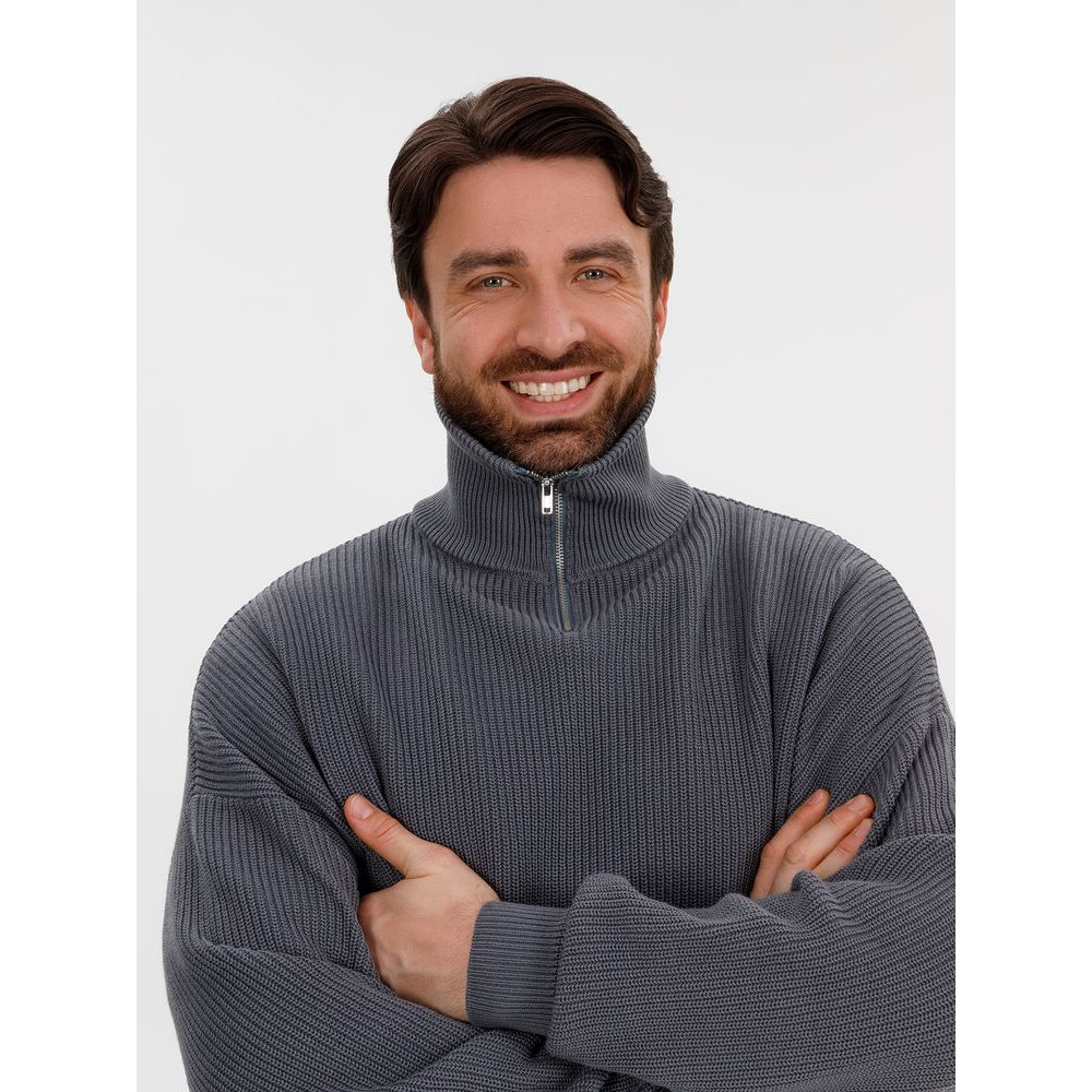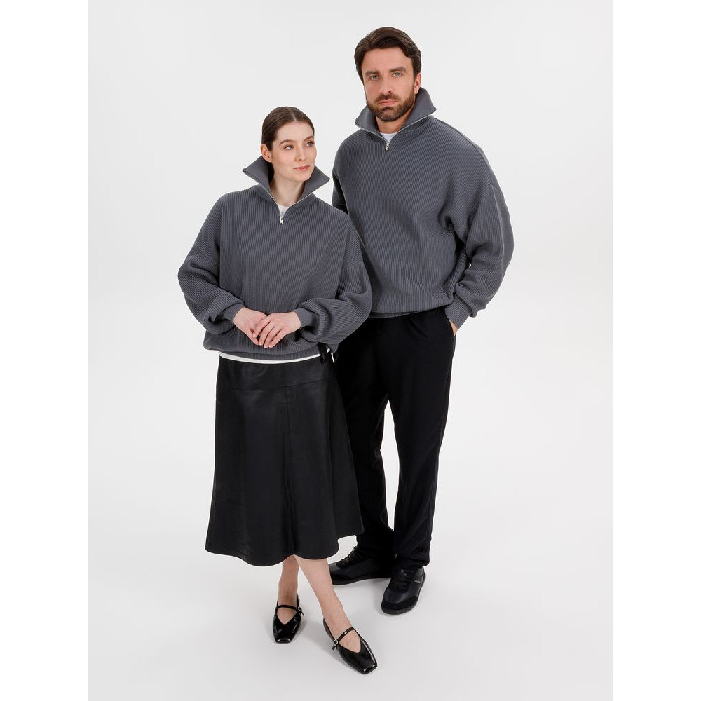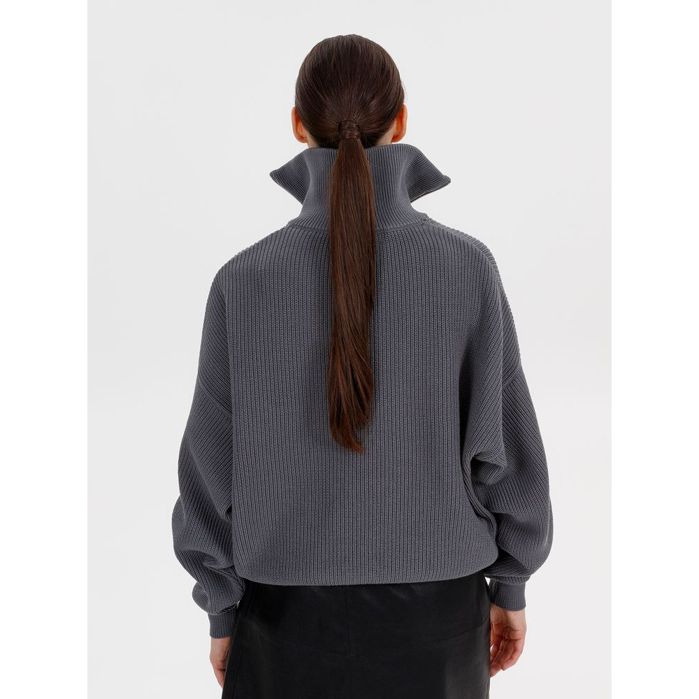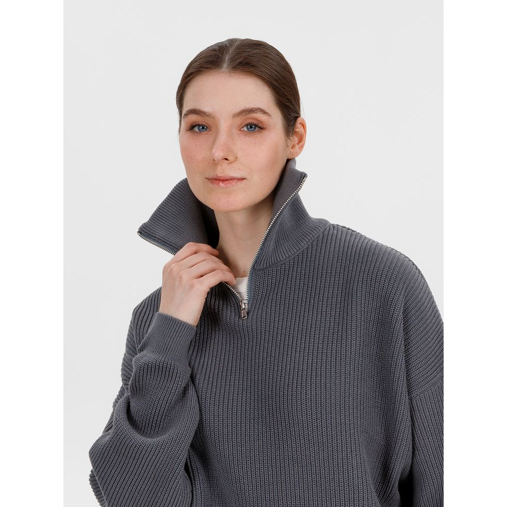 Siluetti Birne — плотный джемпер фактурной вязки со спущенной линией плеча позволит добавить в силуэт мягких линий и ненавязчивого объема, а также создать современный модный образ в лаконичном актуальном стиле, отдав при этом дань беспроигрышной классике. Дополнительным акцентом служит высокая горловина на молнии, а широкая резинка на рукавах и по нижнему краю изделия гарантирует максимальный комфорт.