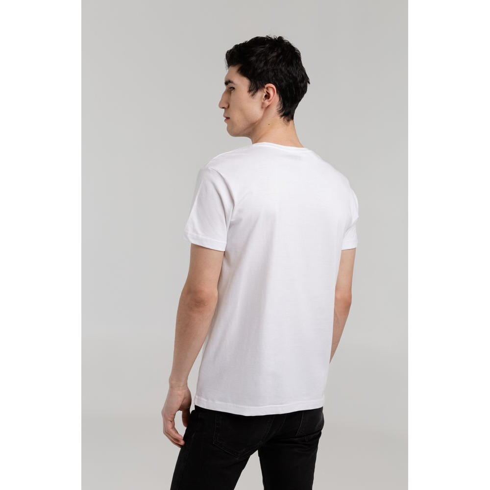 Мужская футболка с круглым вырезом. Двухслойная резинка предохраняет воротник от деформации после стирки.