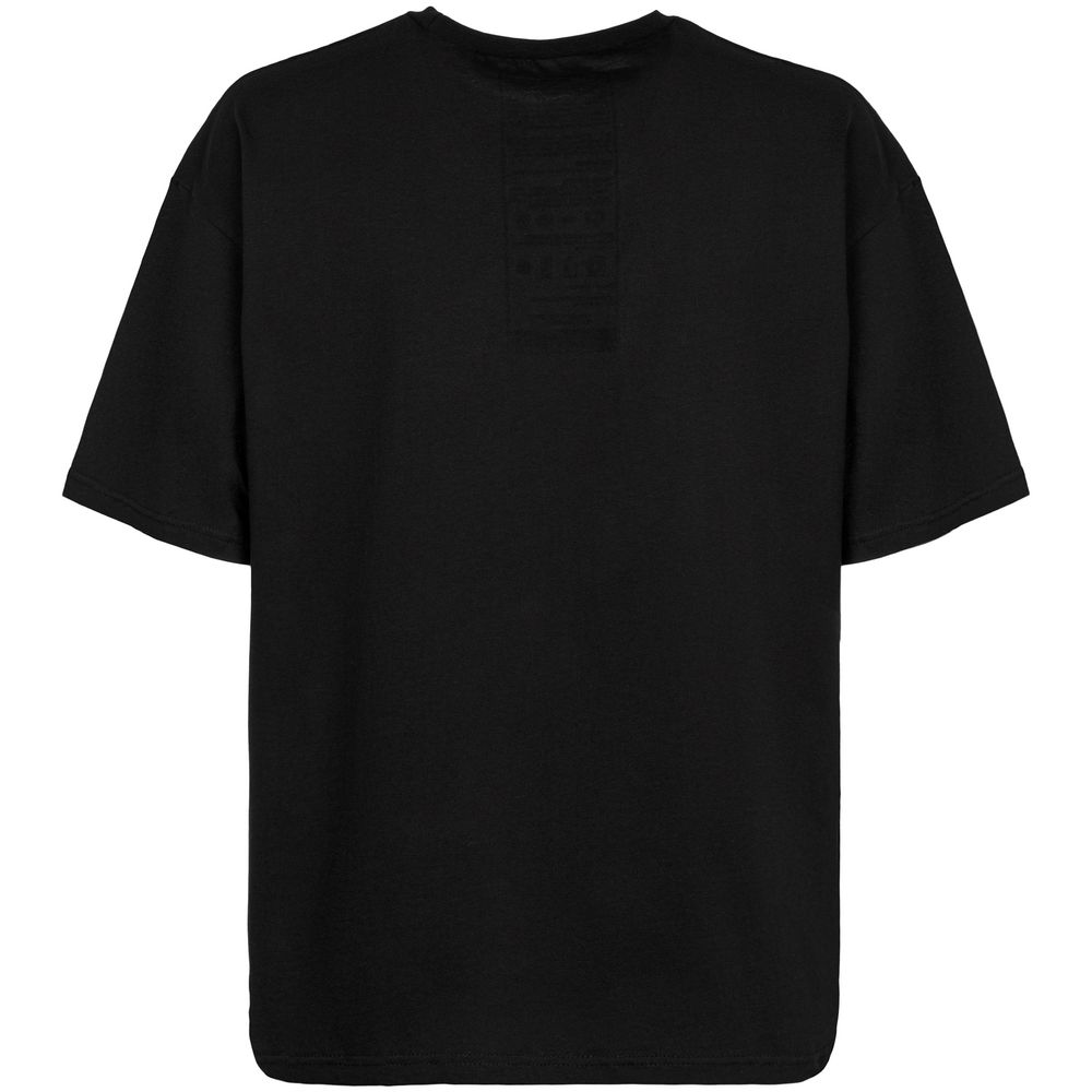 Принт с информацией о бренде и инструкцией по уходу за изделием на изнаночной стороне футболки.