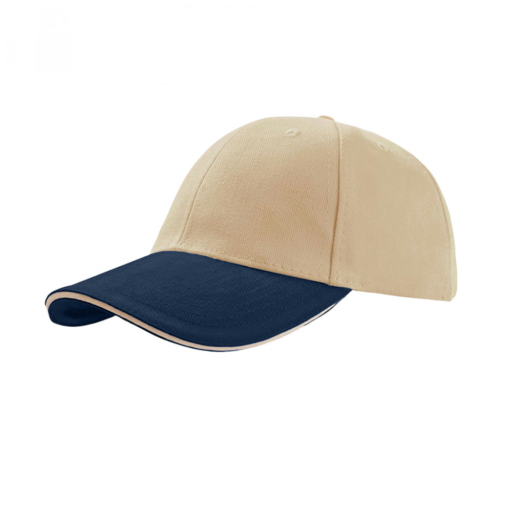 Параметры: Бейсболка "LIBERTY SANDWICH",6 клиньев,сэндвич,металл.застежка,бежев. с синим,100% хлопок,250г/м2