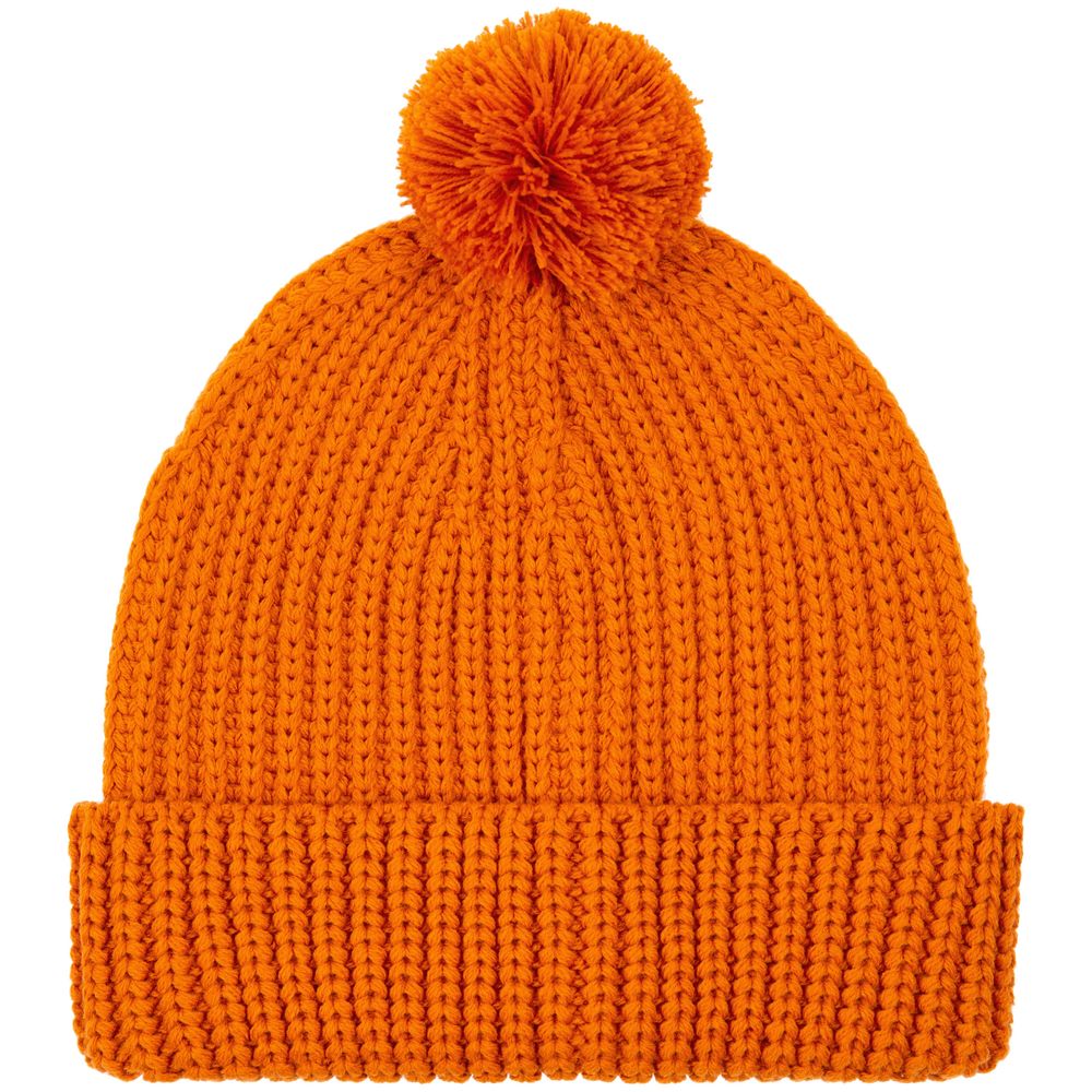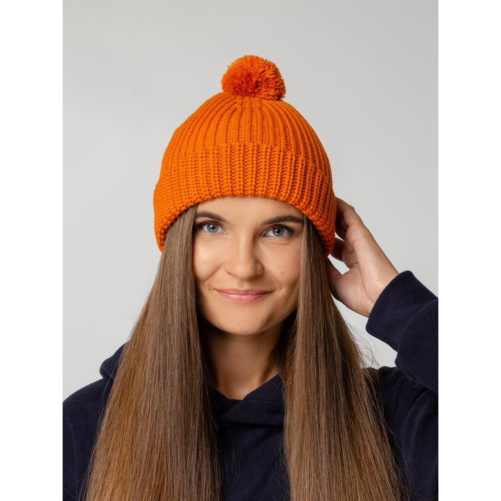 Однослойная шапка из высокообъемной пряжи с помпоном.