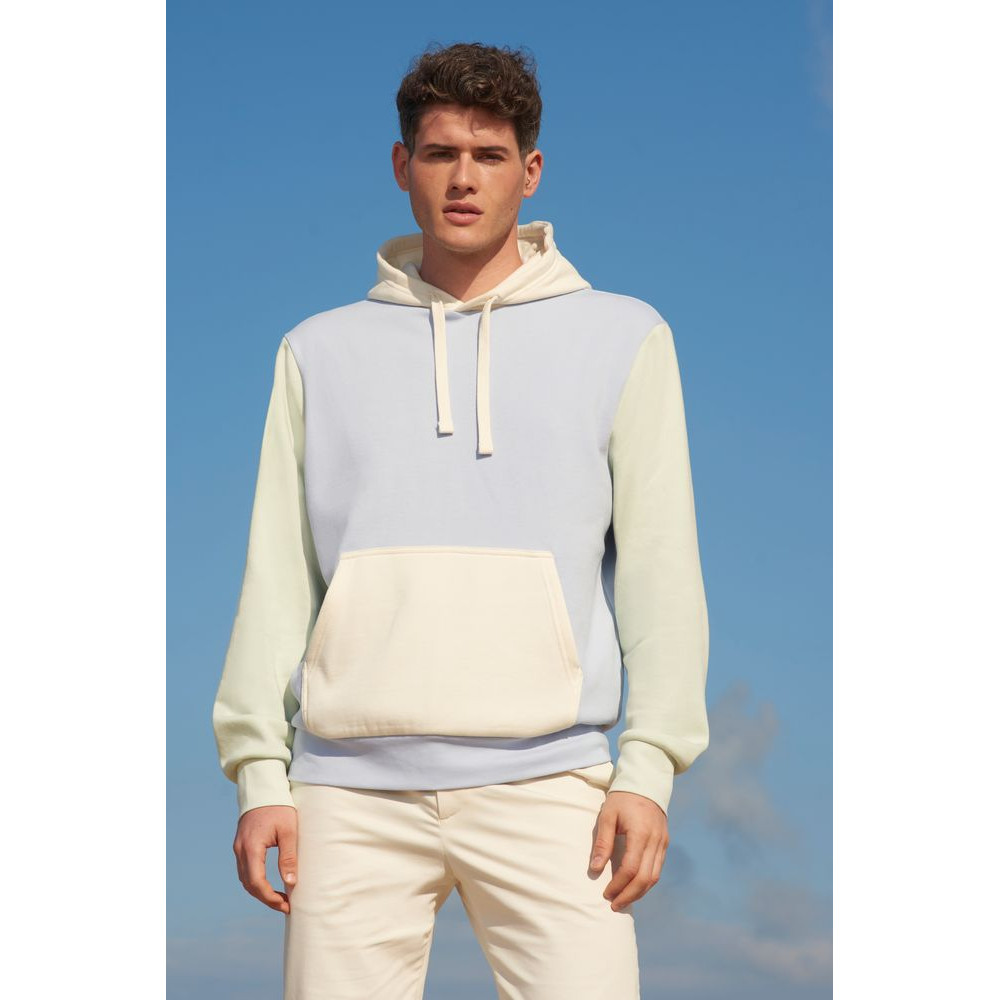 Трехцветное утепленное худи унисекс из органического хлопка и переработанного полиэстера.