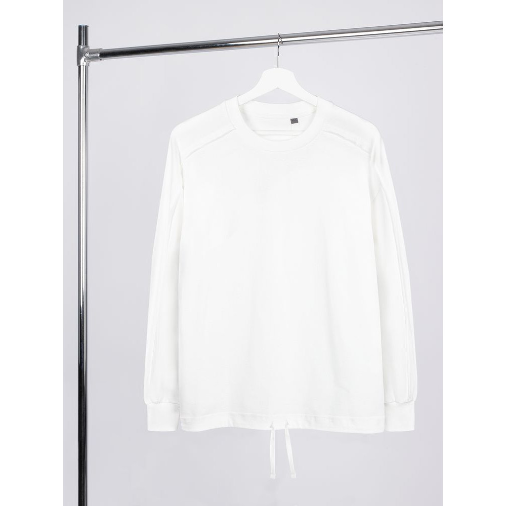 Свитшот унисекс оригинального пошива вдохнет новую жизнь в повседневный гардероб и добавит стильную нотку легкой небрежности в образ. Особая конструкция, где часть деталей — плечи и рукава — вывернута наизнанку, создает необычный притягательный эффект.