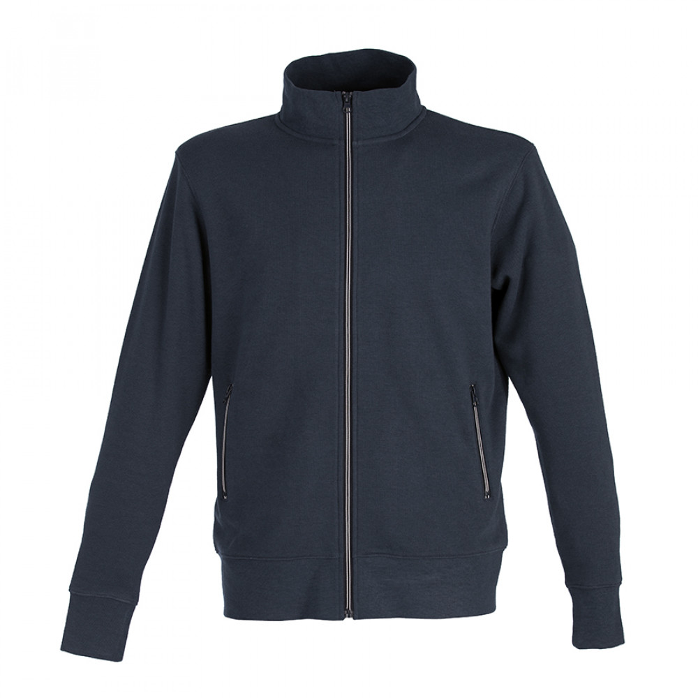 Основная ткань: цвет, близкий к Pantone 532 C Удобный воротник-стойка. Контрастная облегченная пластиковая молния. Два передних кармана на молнии. Декоративная тесьма по горловине спинки. Манжеты, воротник и низ изделия обработаны рибом 1*1.