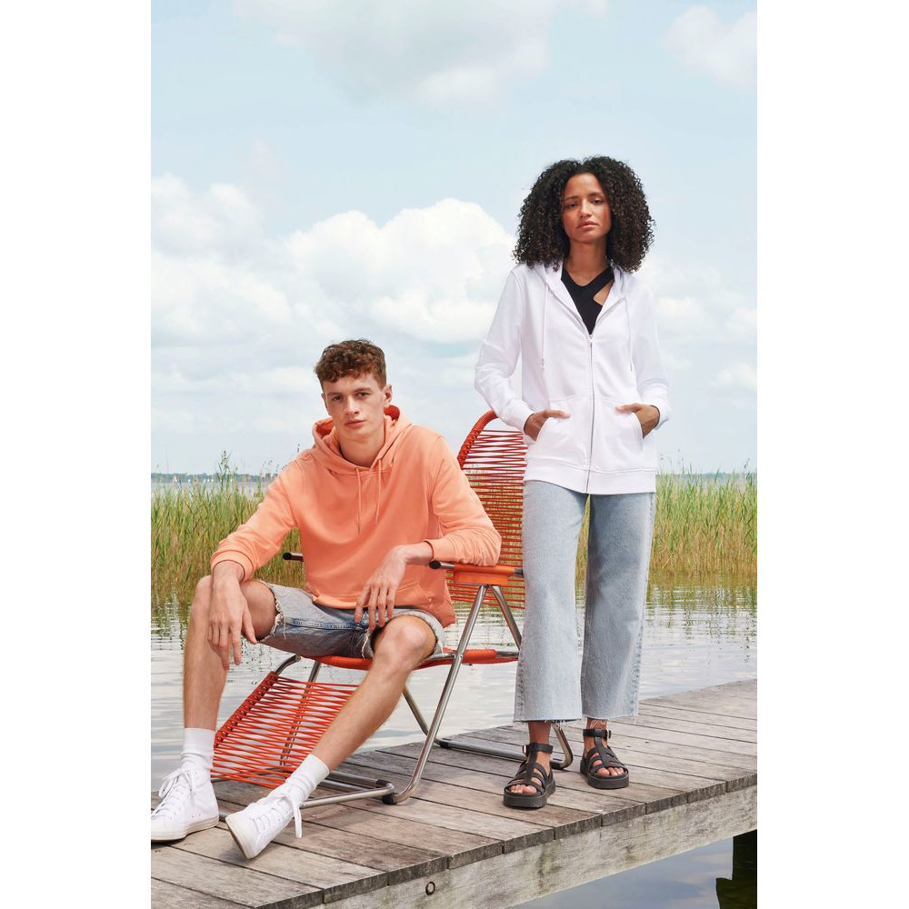 Базовая толстовка унисекс на молнии выполнена из органического хлопка и переработанного полиэстера.