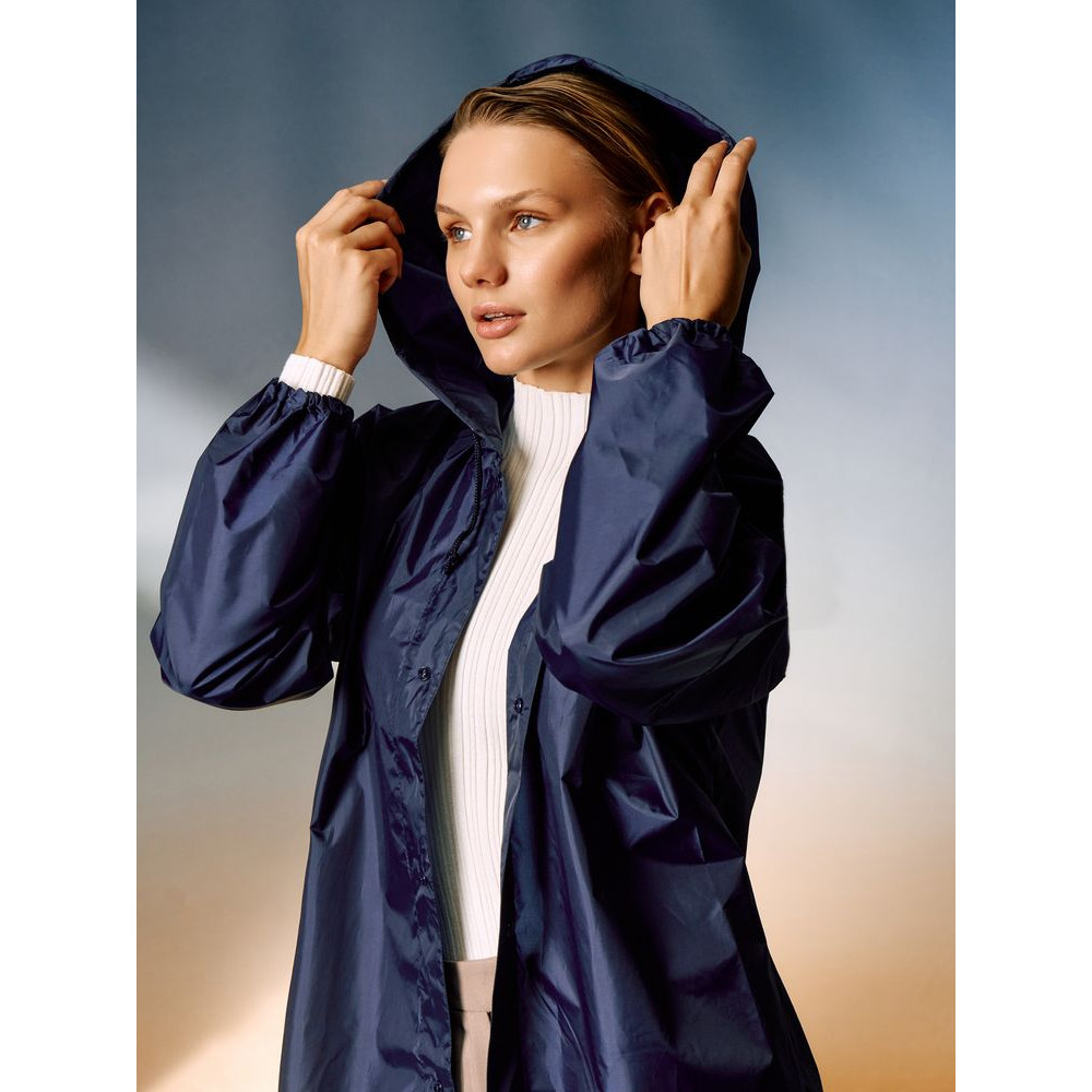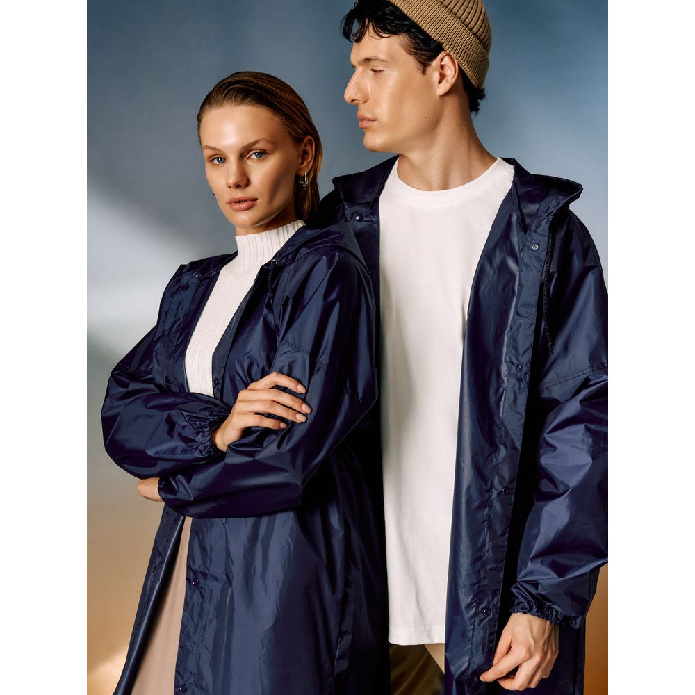 На Rainman получится нанести более яркое и четкое изображение с тонкими линиями, ведь переплетение нитей в ткани едва заметно. Фурнитура в цвет изделия удержит все внимание вокруг вашего маркетингового сообщения.Плащ-дождевик из ткани таффета на кнопках с капюшоном.