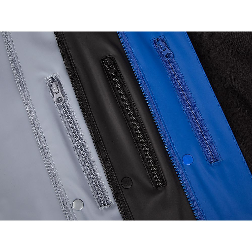 • Абсолютно водостойкие швы благодаря методу спаивания деталей кроя позволяют использовать дождевик даже в шторм
