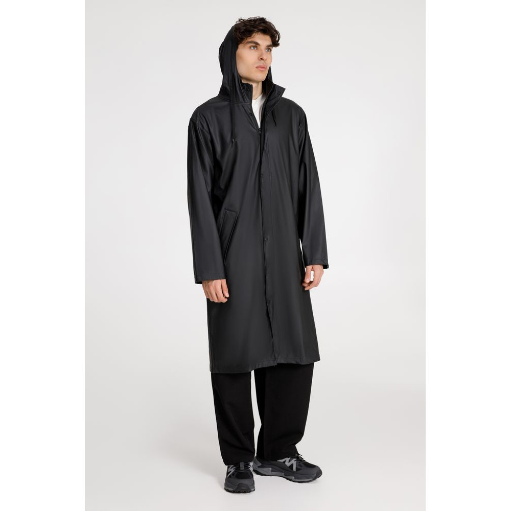 Плащ-дождевик с капюшоном из полиэстера с полиуретановым непромокаемым покрытием.