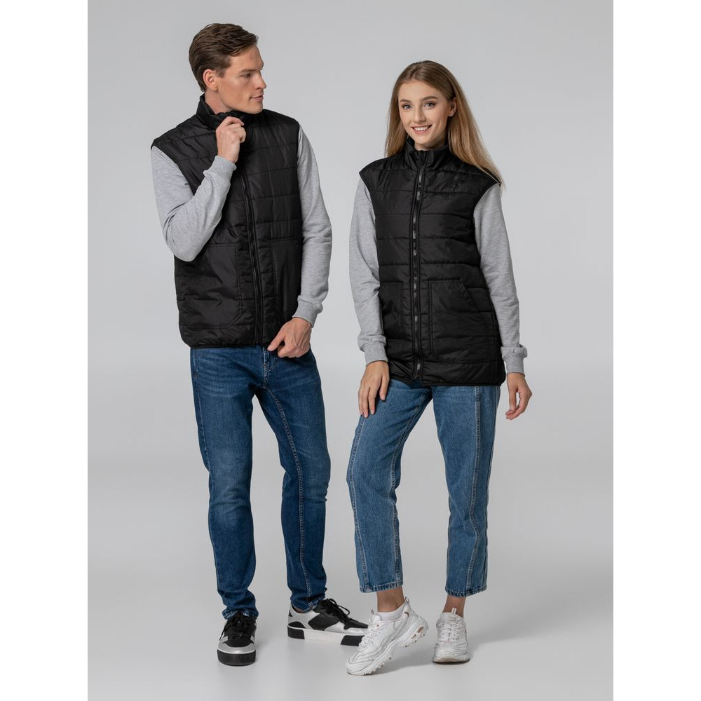 Утепленный стеганый жилет унисекс из ткани дюспо, которая считается лучшим современным материалом для изготовления курток, ветровок и плащей. Это прочный материал из полимерных волокон с защитной пропиткой, который не впитывает влагу и обеспечивает хорошую циркуляцию воздуха.