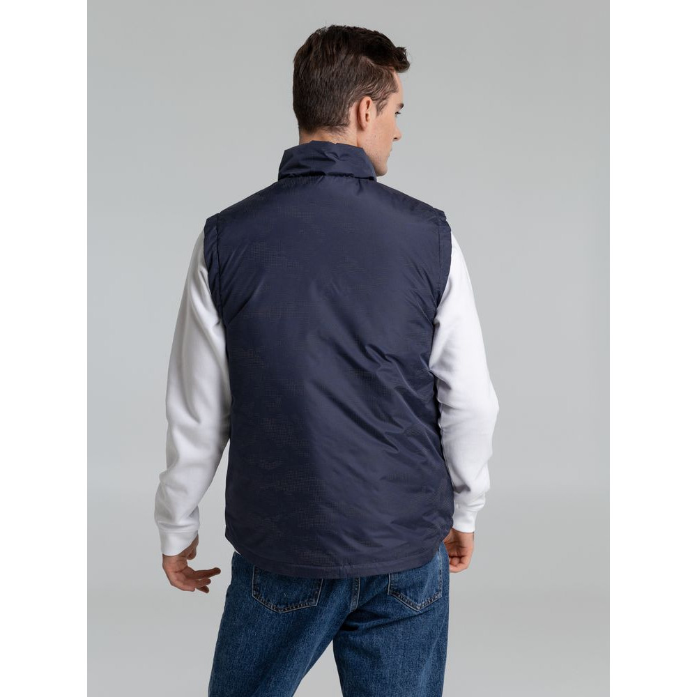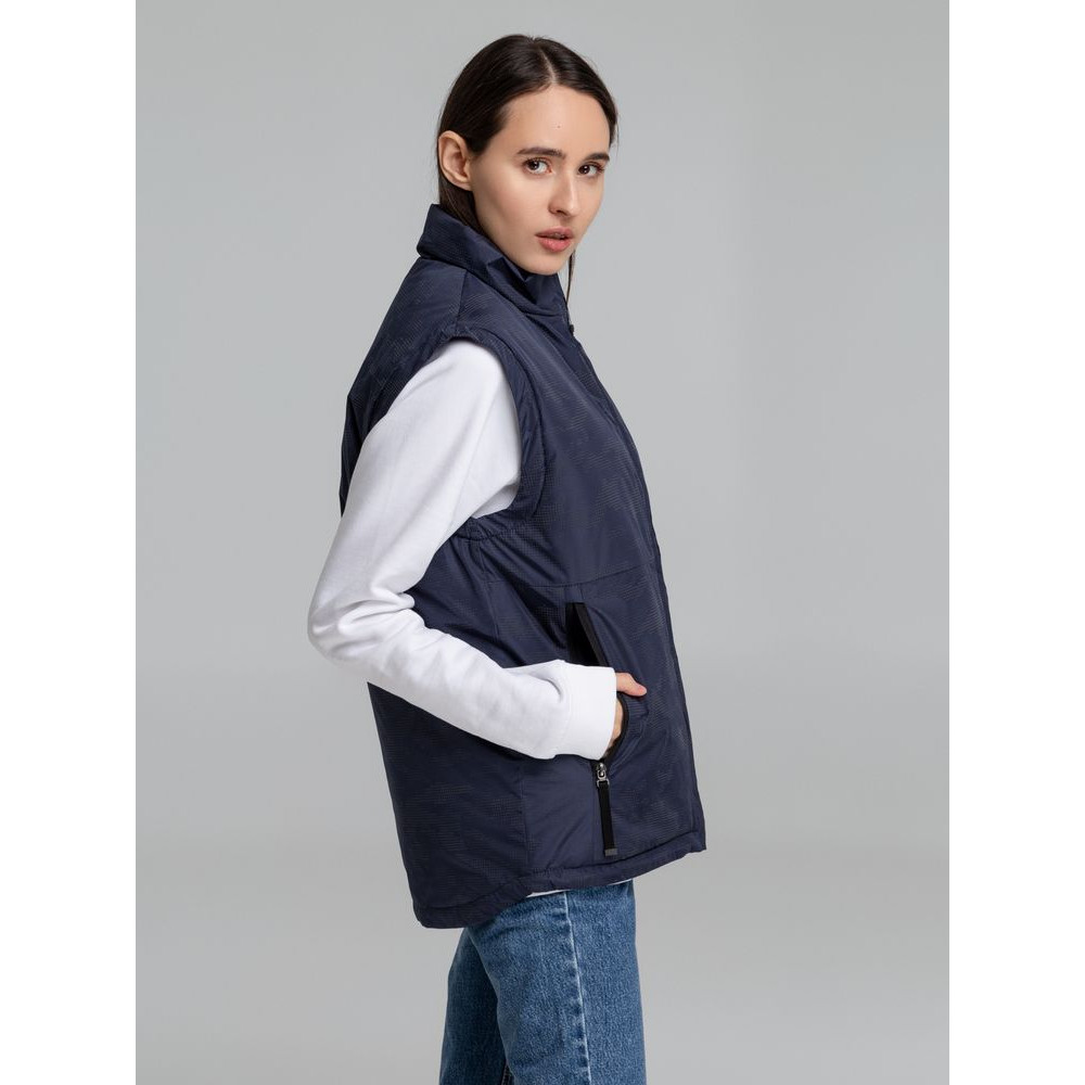Жилет с воротником-стойкой и светоотражающим рисунком.