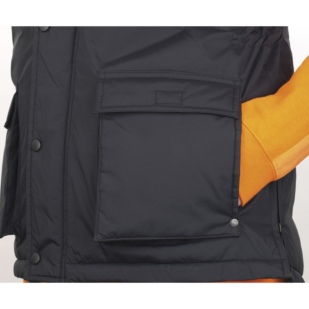 • Две молнии по бокам внизу для большей легкости движения, одна внутренняя молния на груди и одна — внизу жилета