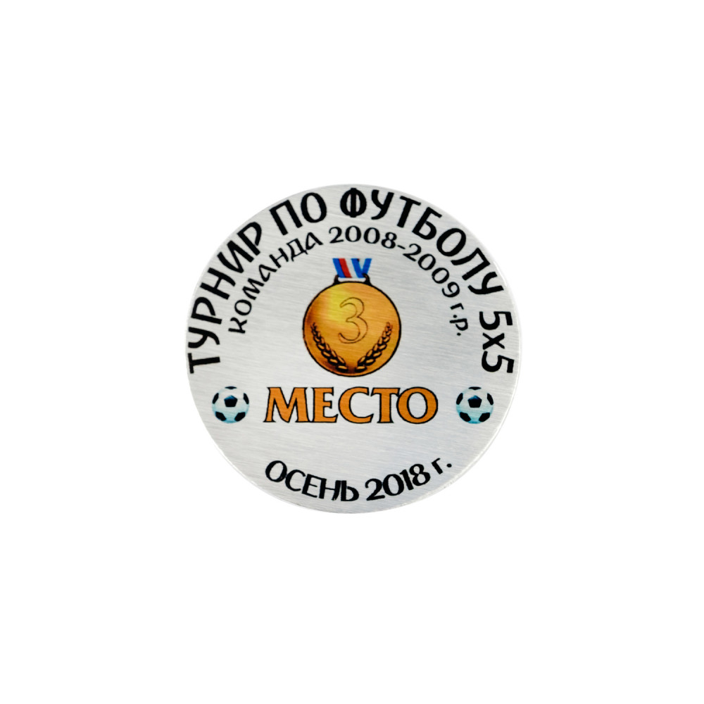 Круглая пластина с вашим изображением и текстом. Персонализируется под любой вид спорта или мероприятия, с любым номером призового места или достижением.