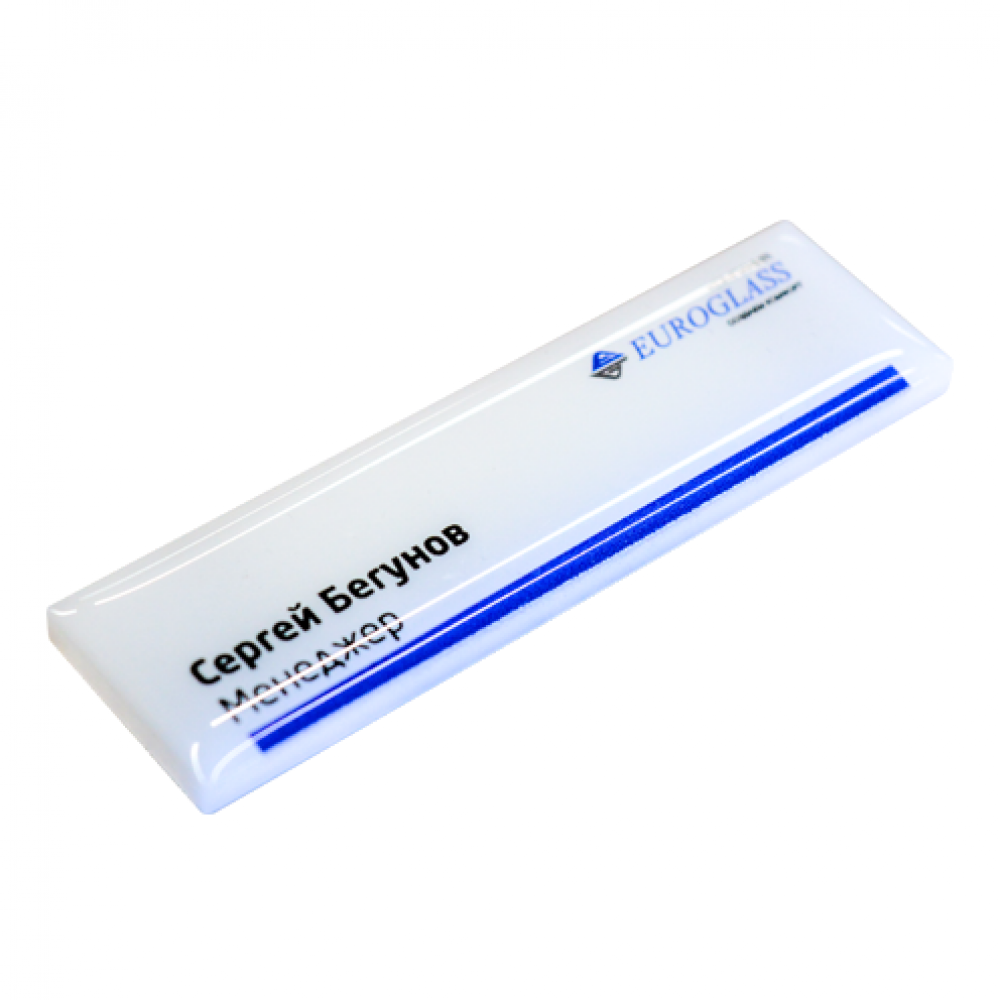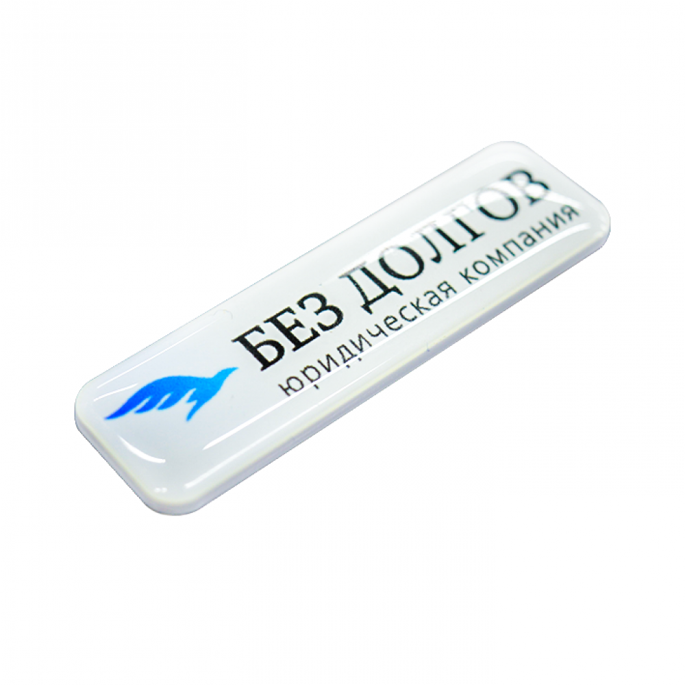 Изображение наносится методом УФ-печати. Отличительные особенности этого нанесения – полноцветная печать, яркие цвета, стойкость к истиранию. Дополнительно бейдж заливается специальной полимерной смолой, что создает эффект увеличения; придает изделию объем и оригинальность.