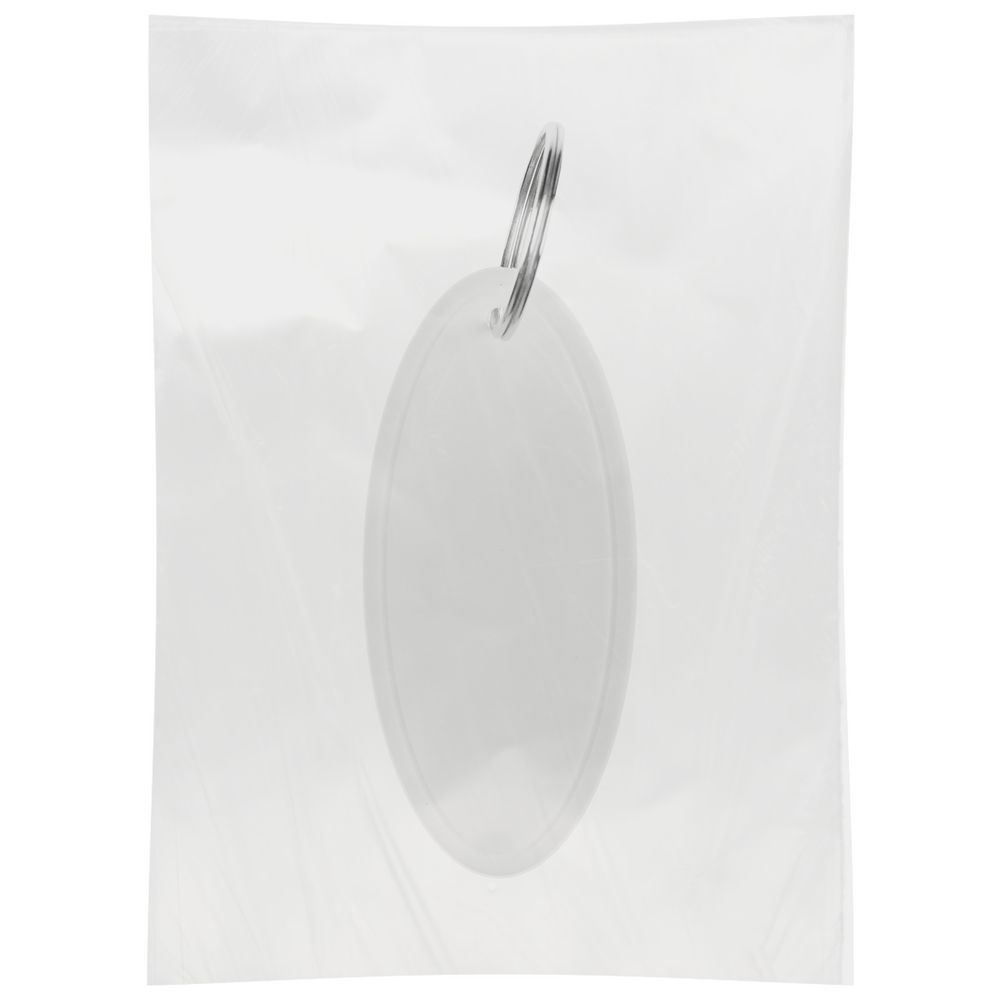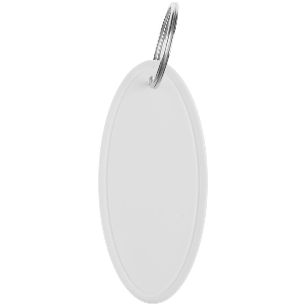 Лаконичный брелок из полипропилена с металлическим кольцом.