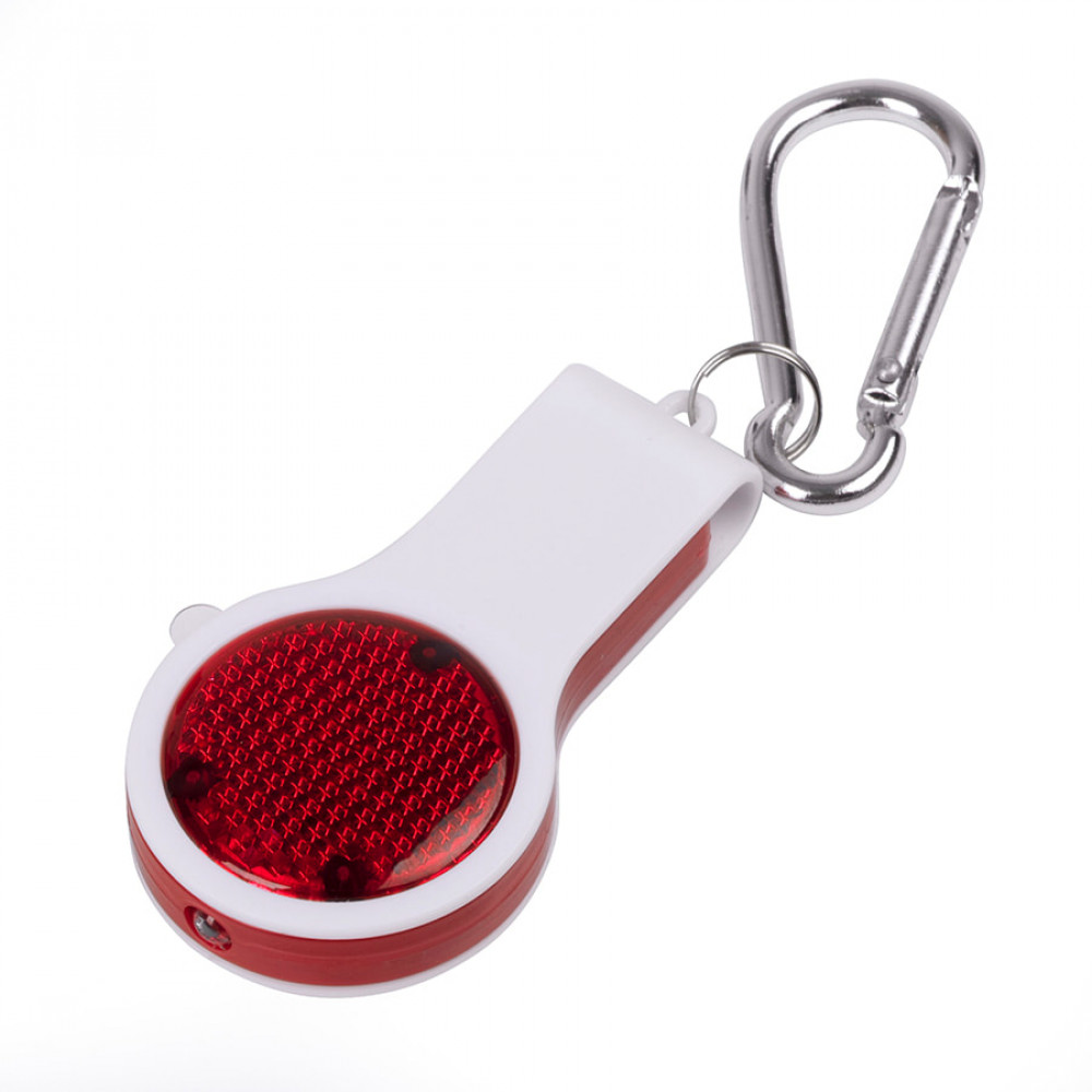 Параметры: Брелок FLOYKIN со свистком, фонариком, светоотражателем на карабине, красный с белым, 3,7х6,7х1,5см