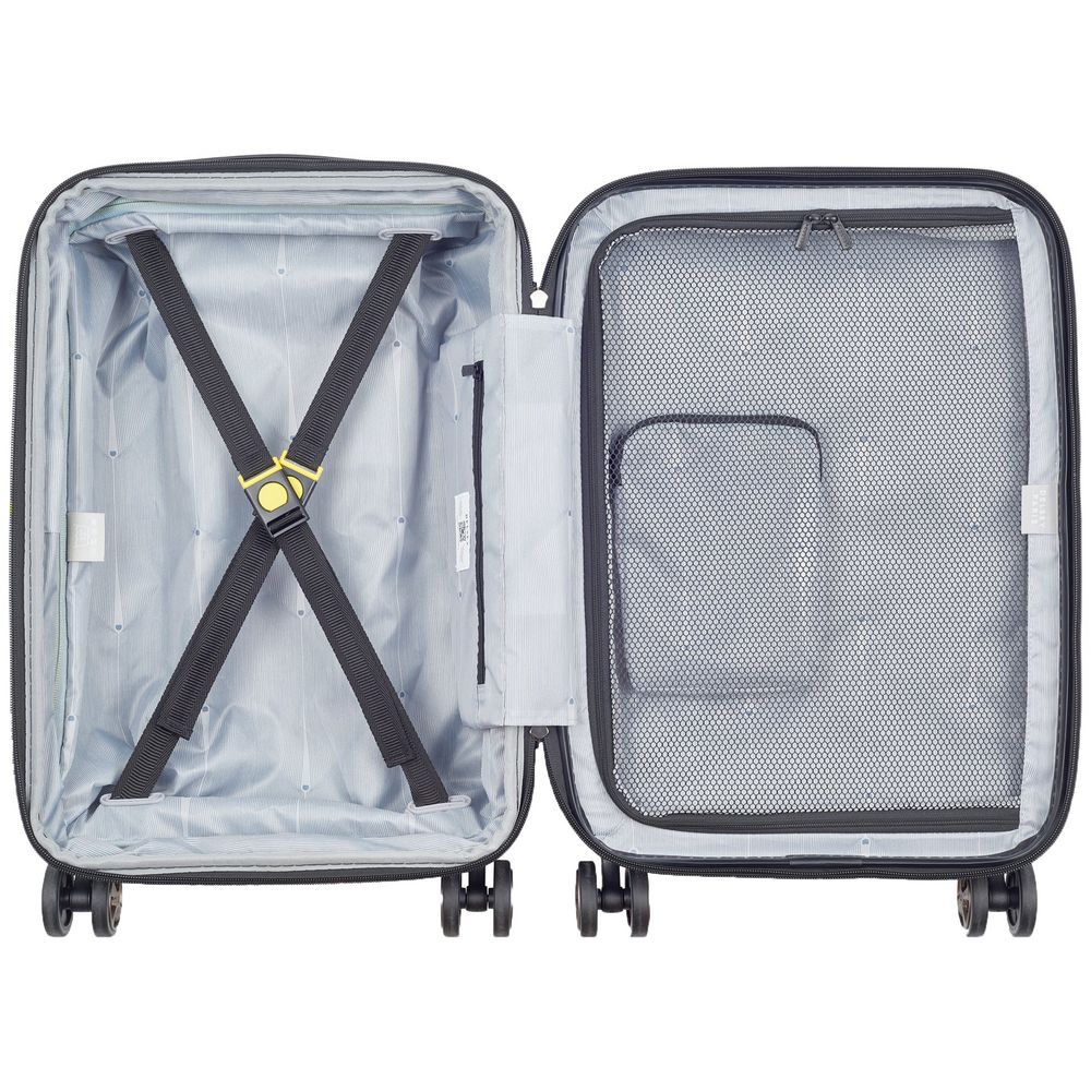 • Чемодан с 2 отделениями: одно из них с фиксирующими ремнями, второе — с разделителем и карманом-органайзером на молнии