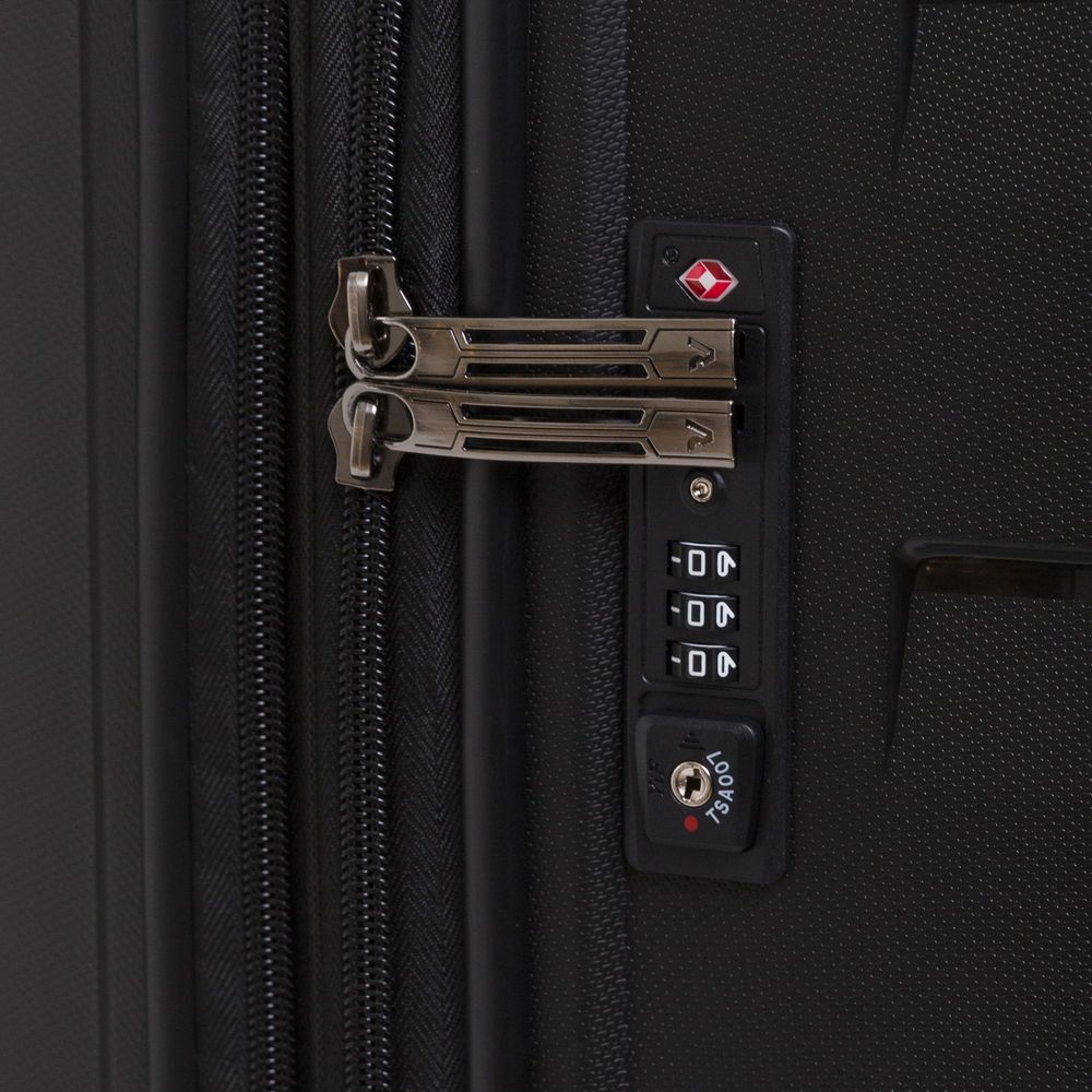 • Чемодан с 2 отделениями: одно из них с фиксирующими ремнями и сетчатой шторкой на молнии, второе — с разделителем на молнии