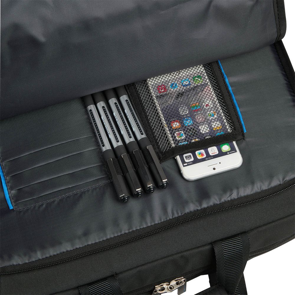 • Передний органайзер на молнии со слотами для карт, держателями для ручек и карманом для телефона