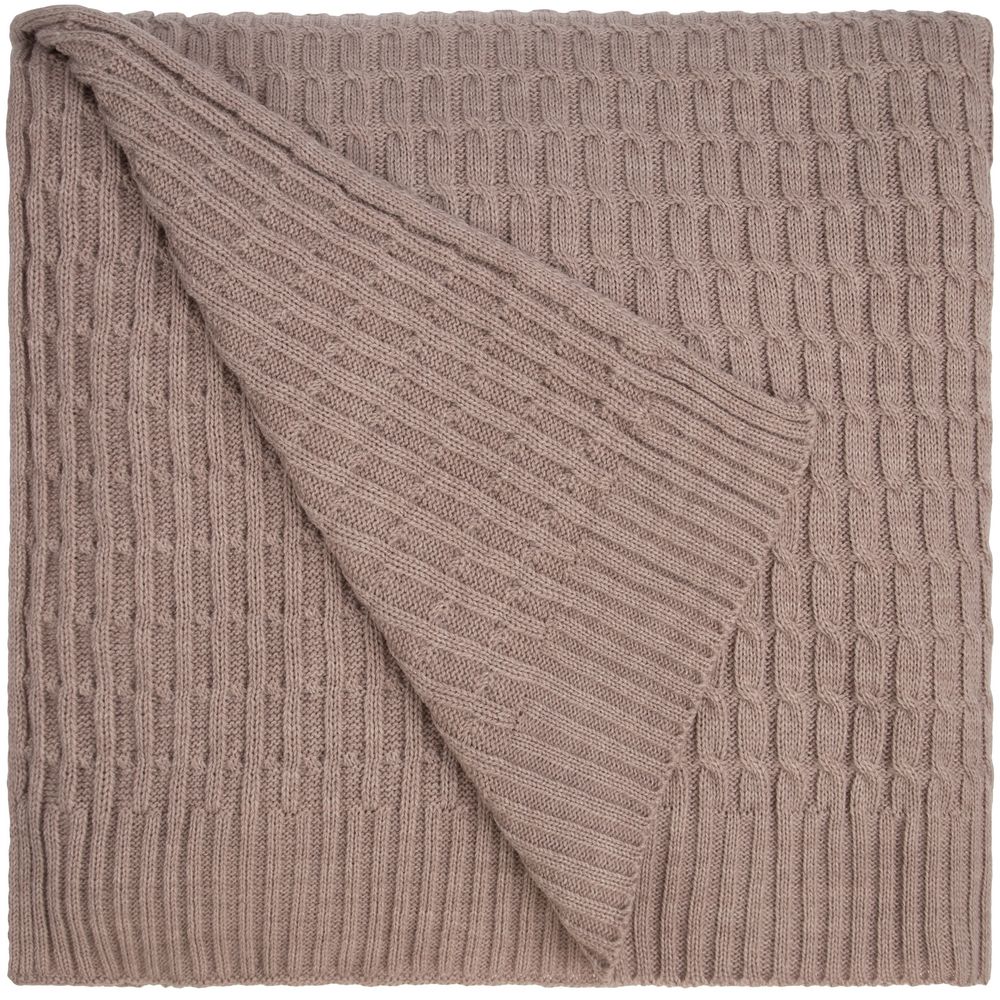 Плед с вывязанным логотипом и рельефным узором в фирменном цвете компании.