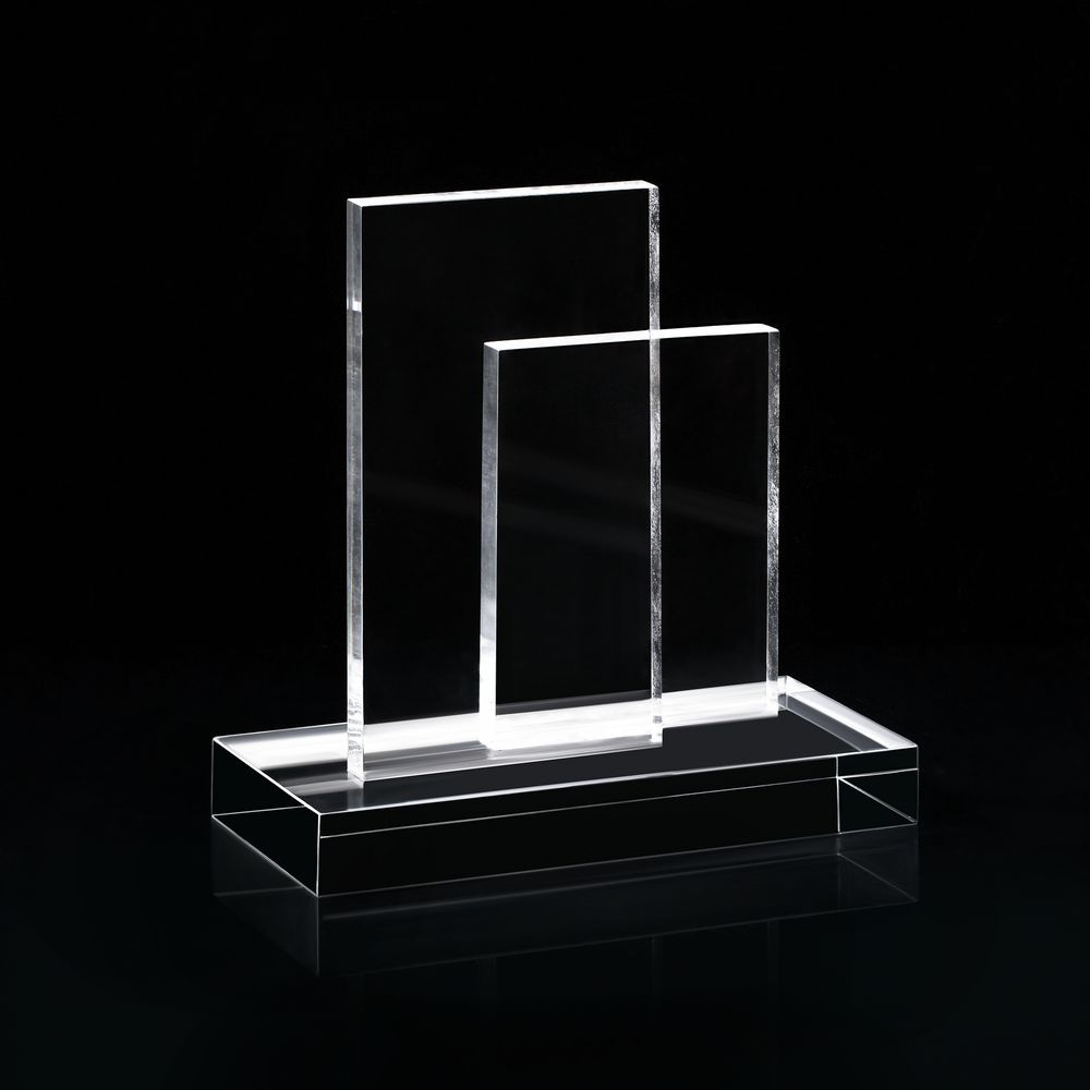 Элегантные линии и прозрачный материал придают стеле Doublet эстетическую привлекательность, позволяя ей гармонично сочетаться с любым интерьером — от офисов до выставочных залов. Акрил (оргстекло) отличается прочностью и легкостью, что обеспечивает долговечность и устойчивость к повреждениям. Благодаря двухуровневой конструкции стела станет прекрасным холстом для идей и творчества и позволит создать уникальную награду со множеством элементов дизайна.