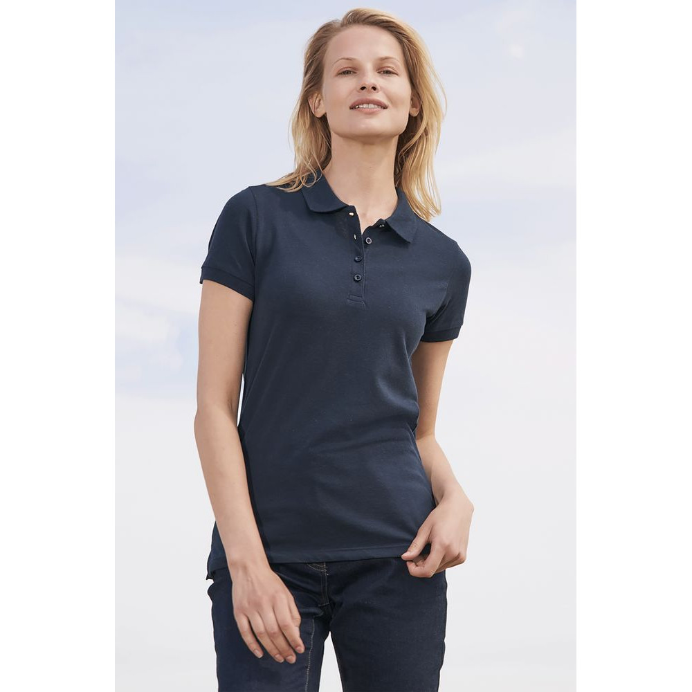 Классическая женская рубашка поло приталенного силуэта из гребенного хлопка.