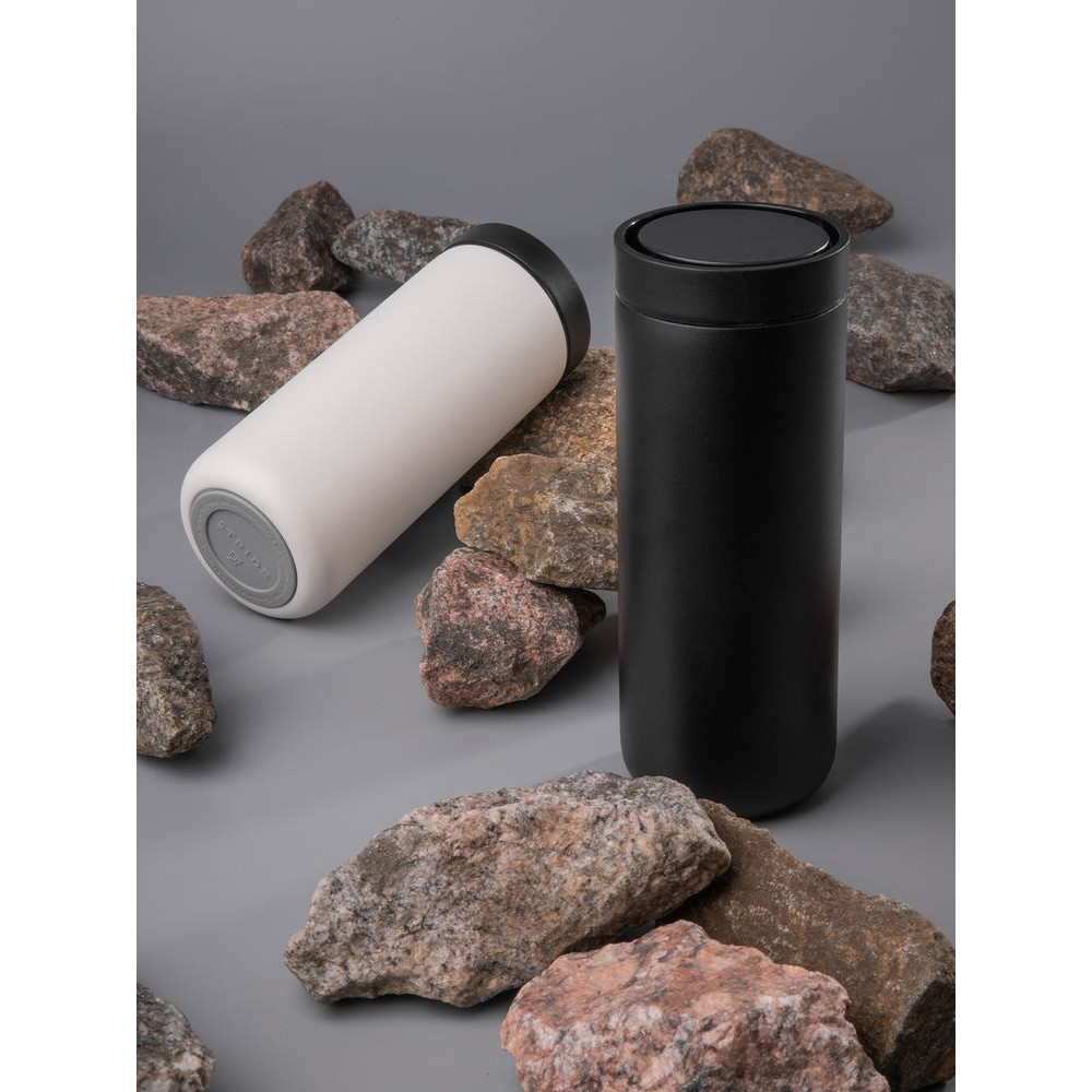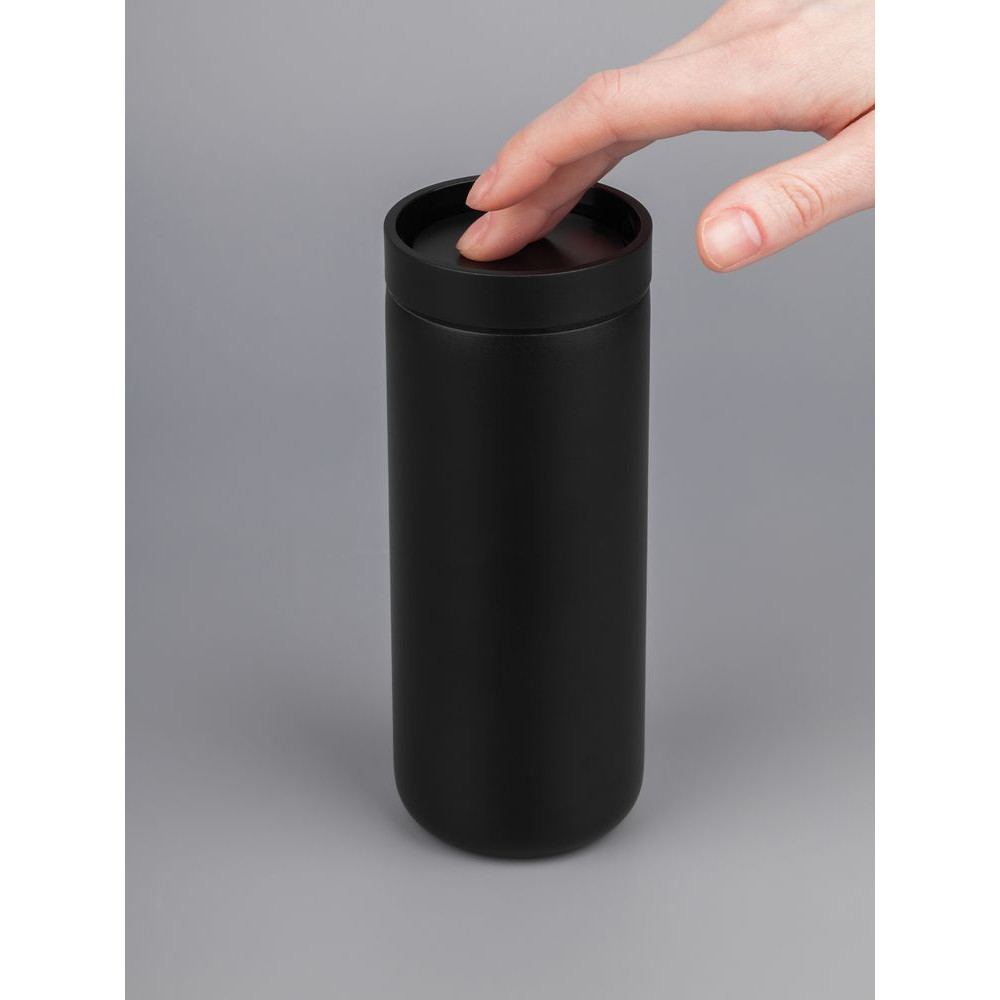 Лаконичный термостакан с удобным клапаном, который открывается и закрывается одним нажатием, — и пить можно с любой стороны.