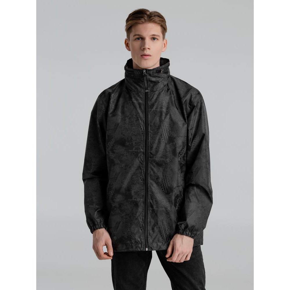 Ветровка с капюшоном из ткани с водоотталкивающей пропиткой и светоотражающим рисунком.