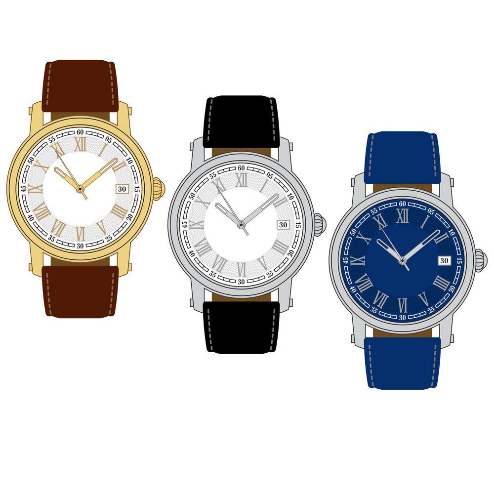 - Цвет циферблата — белый, черный, синий.