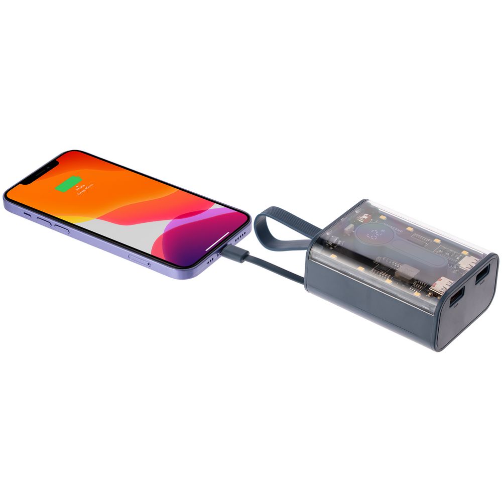 – Выход USB-A QC (оранжевый): 5 В, 3 A; 9 В, 2 A/12 В, 1,5 A, USB-A (черный), Type-C, Lightning (кабели): 5В, 2А - Время зарядки: до 3 часов при использовании зарядного устройства с разъемом Type-C и поддержкой функции QC 3.0