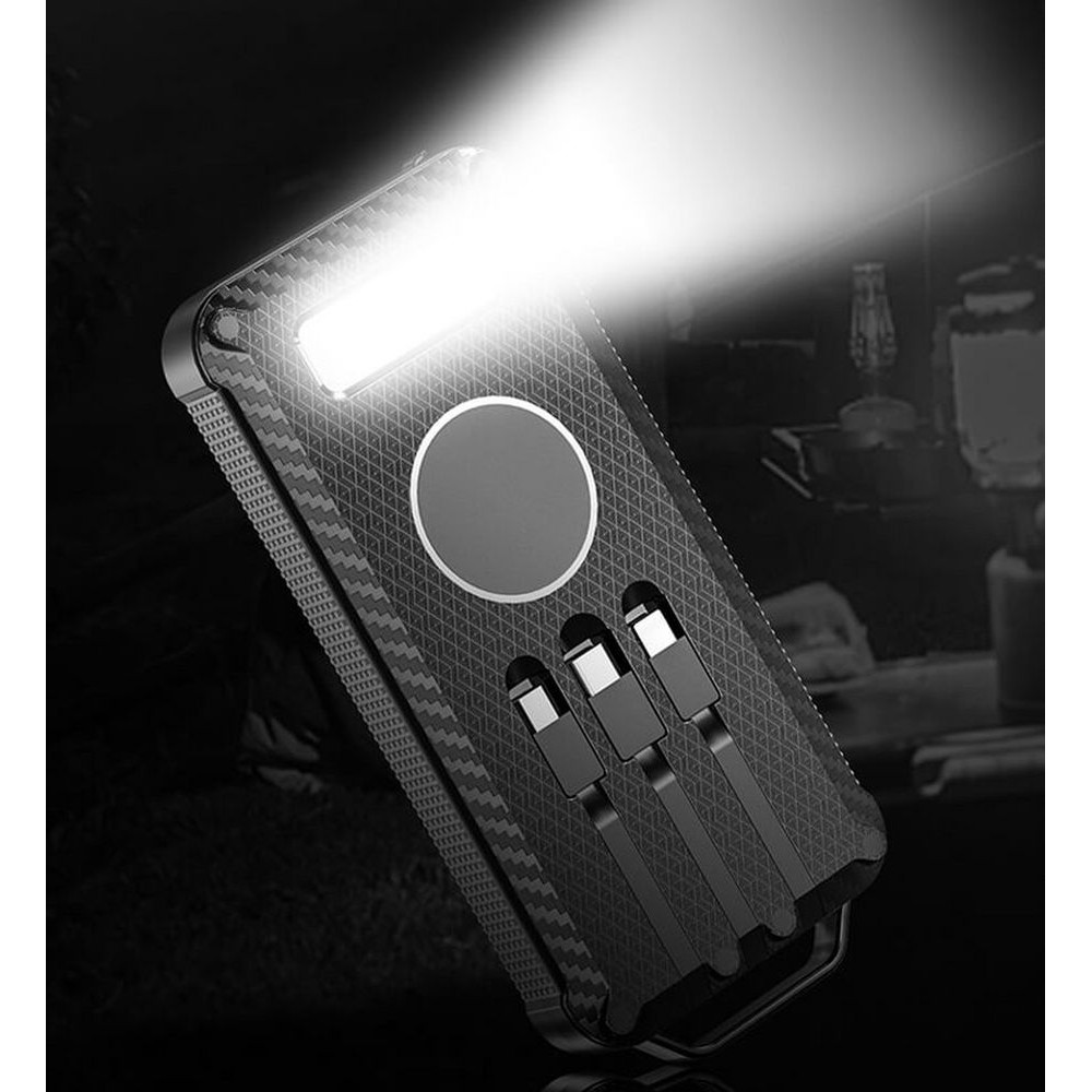 Total Control — настоящий outdoor-аккумулятор с ударопрочным корпусом и защитой от пыли и брызг, который не страшно взять в поход. Область для беспроводной зарядки и 3 встроенных кабеля с разъемами Micro USB, Type C и Lightning позволяют удобно заряжать разные типы устройств, а солнечная батарея просто не позволит остаться совсем без связи. Яркий фонарик осветит путь или послужит светильником в палатке.