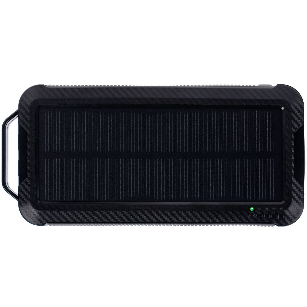 Прорезиненные вставки и рисунок на корпусе с имитацией карбона добавляют хорошей агрессивности внешнему виду аккумулятора — сразу видно, что его хозяин готов к приключениям.