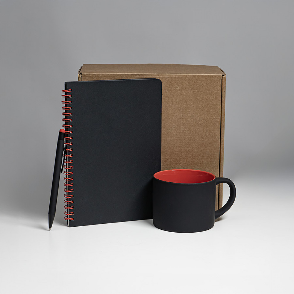 • Набор подарочный FLAME: блокнот, ручка, кружка; черный/красный