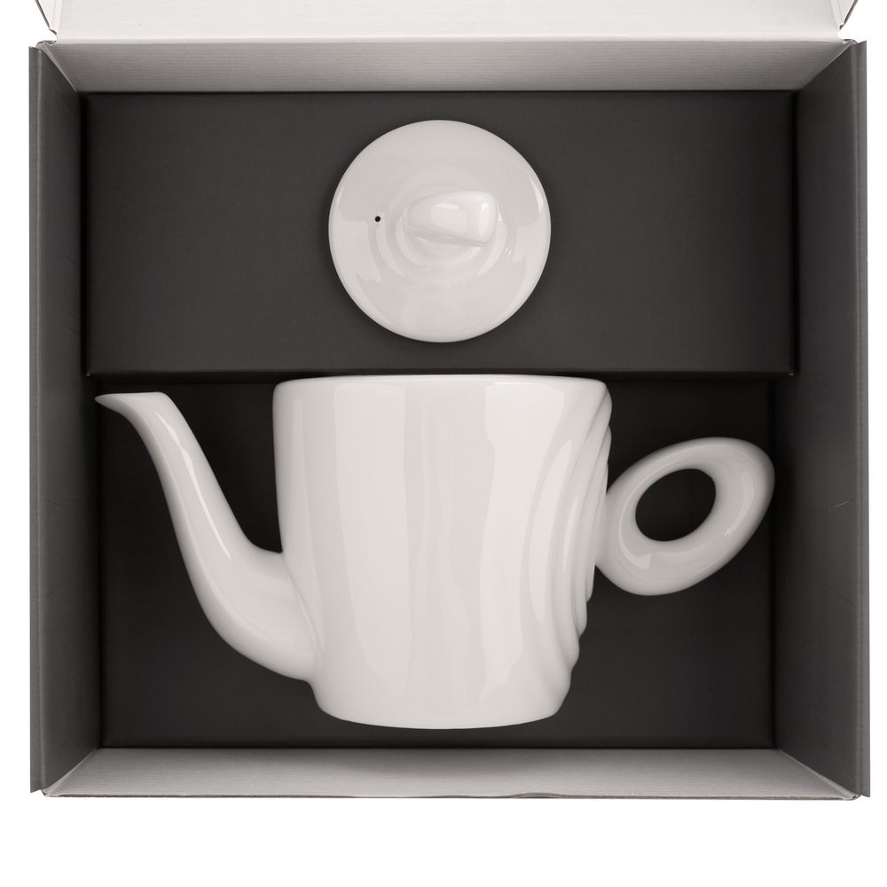 Форма сервиза создана в скульптурной технике: фарфор словно запечатлел сам момент движения. Необычная ручка предметов символизирует камень, от которого появляются завораживающие круги на воде — корпусе изделия.