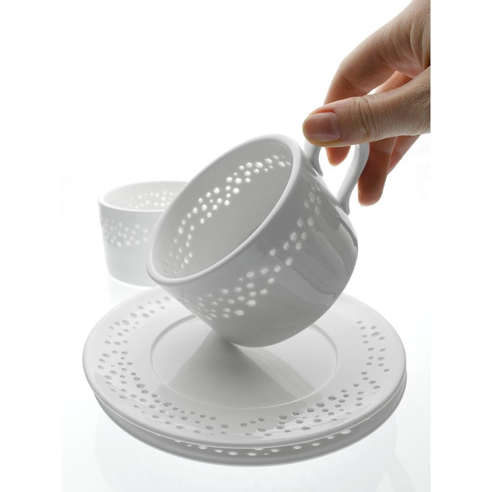 Чайные пары Coralli — легкая, словно светящаяся изнутри посуда с легендарным узором «рисовое зерно». Благодаря тонкому слою прозрачной глазури кружка выглядит кружевной и ажурной, при этом напиток гарантированно остается внутри.