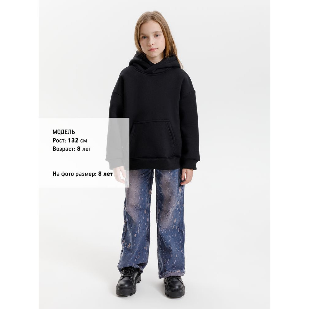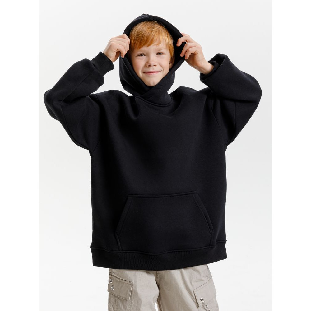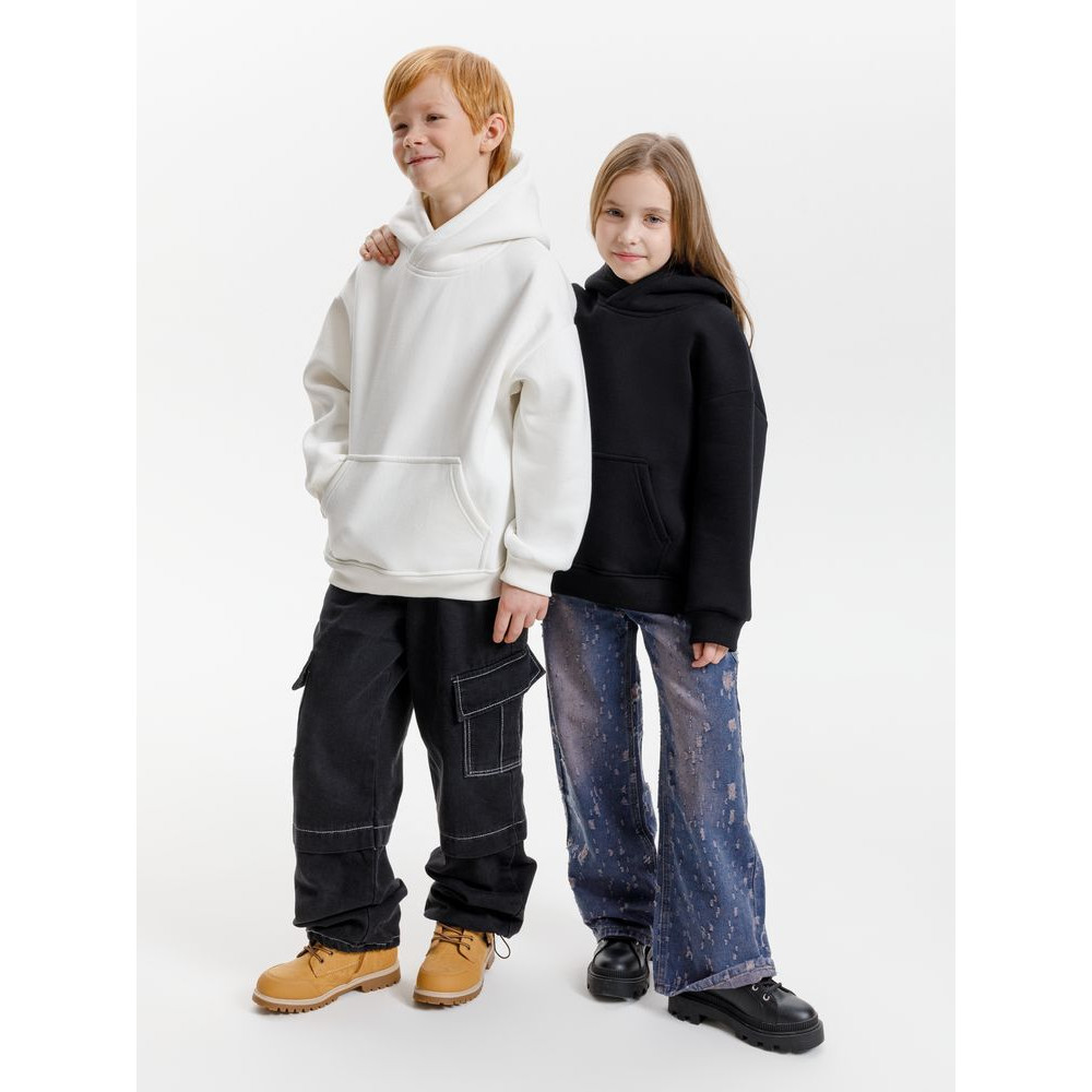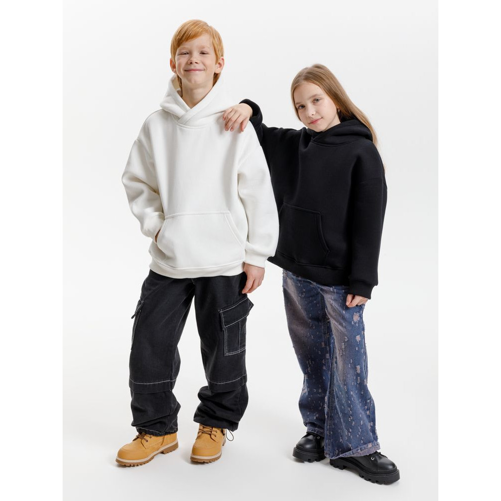 Детское худи унисекс со спущенным плечом и карманом-кенгуру.