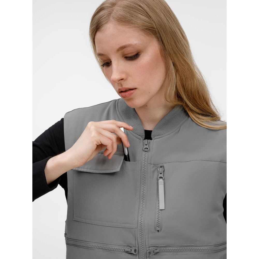 • 8 функциональных карманов, из них на передней части: 1 карман с клапаном для документов/рации, 1 карман для ручки, 5 вместительных на молнии, а так же 1 карман под планшет на молнии на спинке жилета