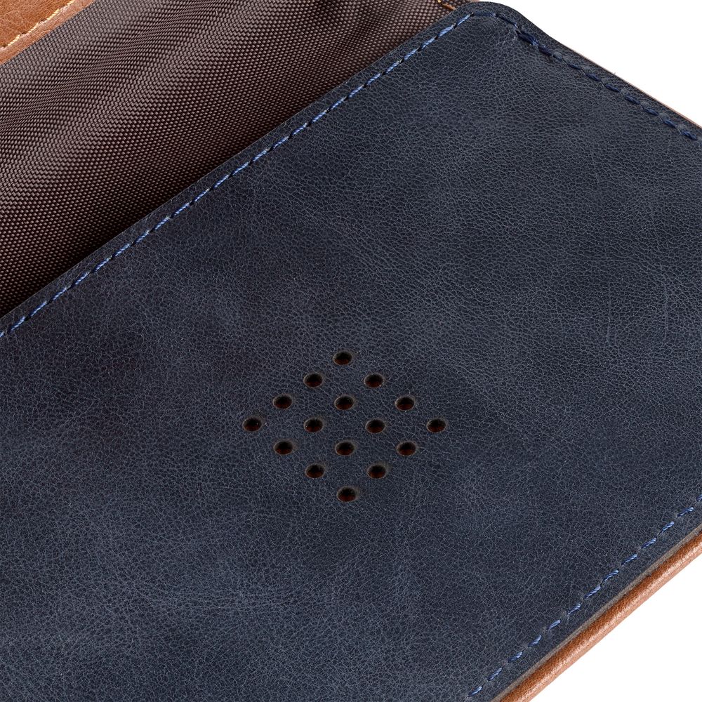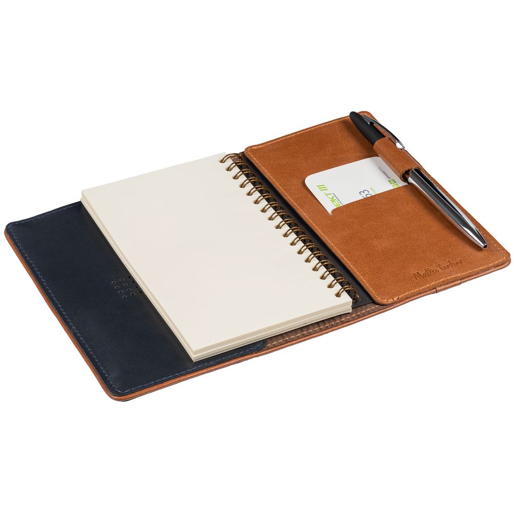Чтобы передать этот удивительный контраст, для изделий Kalsa Palermo была выбрана гладкая натуральная кожа: глубокого синего цвета снаружи и светло-коричневого оттенка внутри. Оформленные в едином стиле, они легко собираются в подарочные наборы.