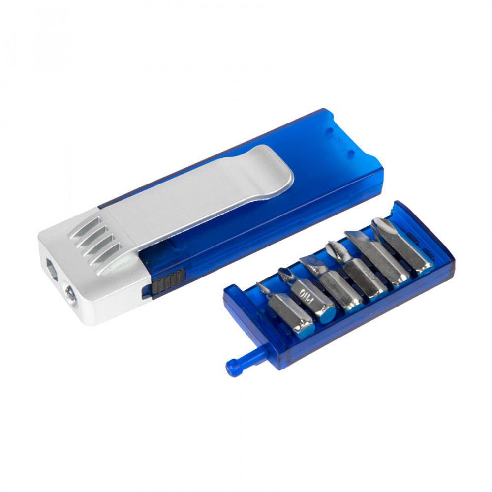 Фонарик и отвертки; синий с серебристым; 9,8х3,2х1,8 см; тампопечать