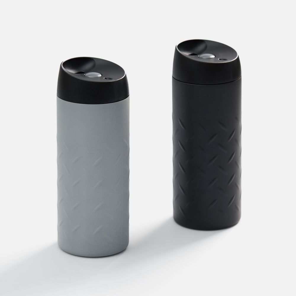 Двухслойная вакуумная конструкция из нержавеющей стали. Герметичная завинчивающаяся крышка с нажимным клапаном для питья. Стакан подходит для большинства автомобильных подстаканников.