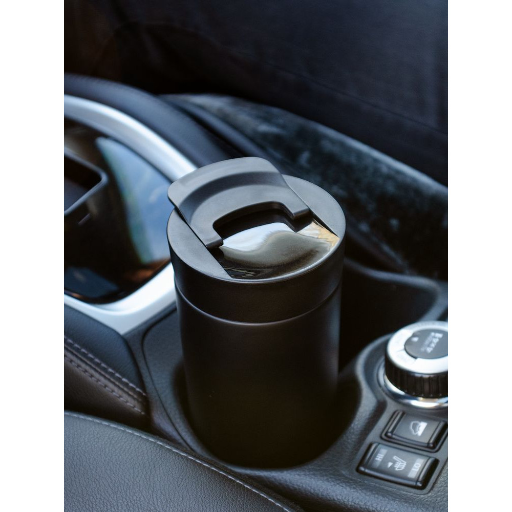 Двухслойная вакуумная конструкция из нержавеющей стали внутри и снаружи. Герметичная завинчивающаяся крышка с откидным клапаном для питья.