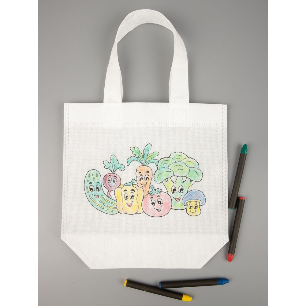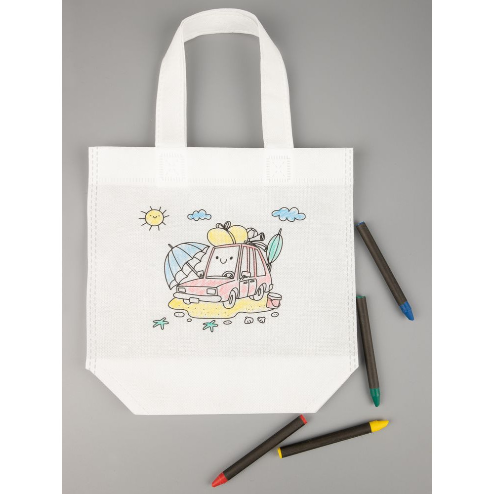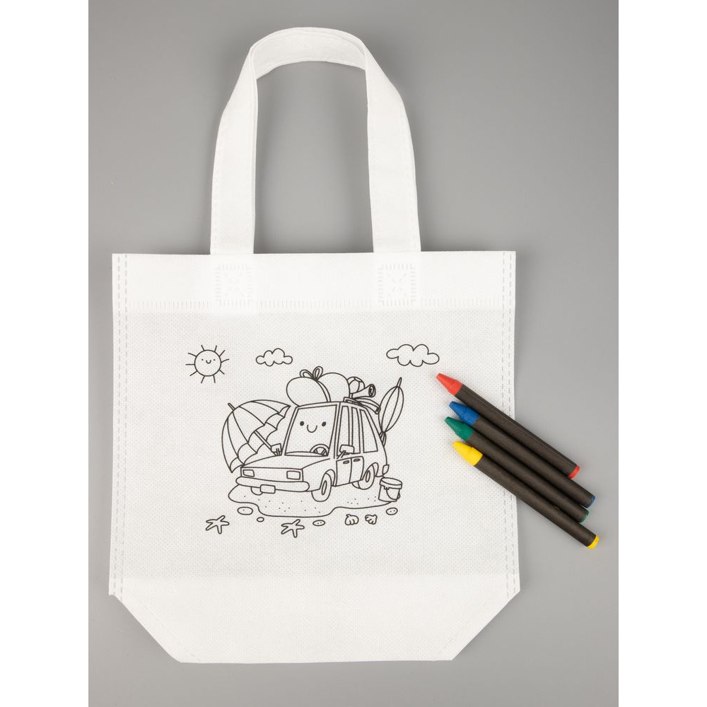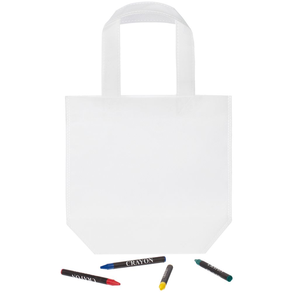В наборе сумка и набор из 4 восковых карандашей.