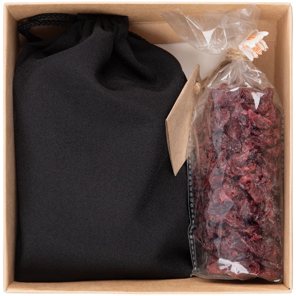 Omnom — небольшой подарочный набор для уютного и полезного чаепития. Черный крупнолистовой индийский чай в холщовом мешочке и сладкая сушеная клюква — запоминающийся знак внимания и деликатное выражение заботы.