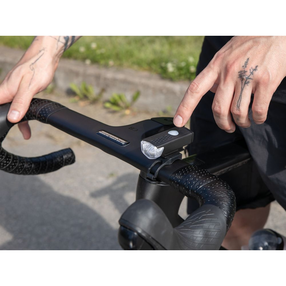 Велосипедному фонарю Markus не страшна непогода! Благодаря влагостойкому корпусу с уровнем защиты от брызг IPX4 его можно использовать даже в дождь. На велосипед фонарь крепится при помощи держателя-ремешка: просто оберните ремешок вокруг руля и зацепите крюк за одно из отверстий. Нейтральный белый свет от фонаря достаточно яркий, так что вы точно не собьетесь с пути поздним вечером.