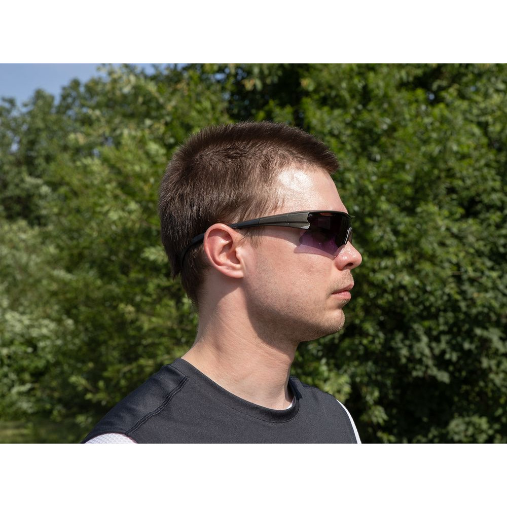 Универсальный дизайн оправы подходит как мужчинам, так и женщинам. Модель надежно и удобно сидит на лице, не сползая даже во время активного движения благодаря прорезиненным дужкам, упору для носа и силиконовому шнурку для фиксации очков на голове. Отлично сочетаются со шлемами и масками любых марок.